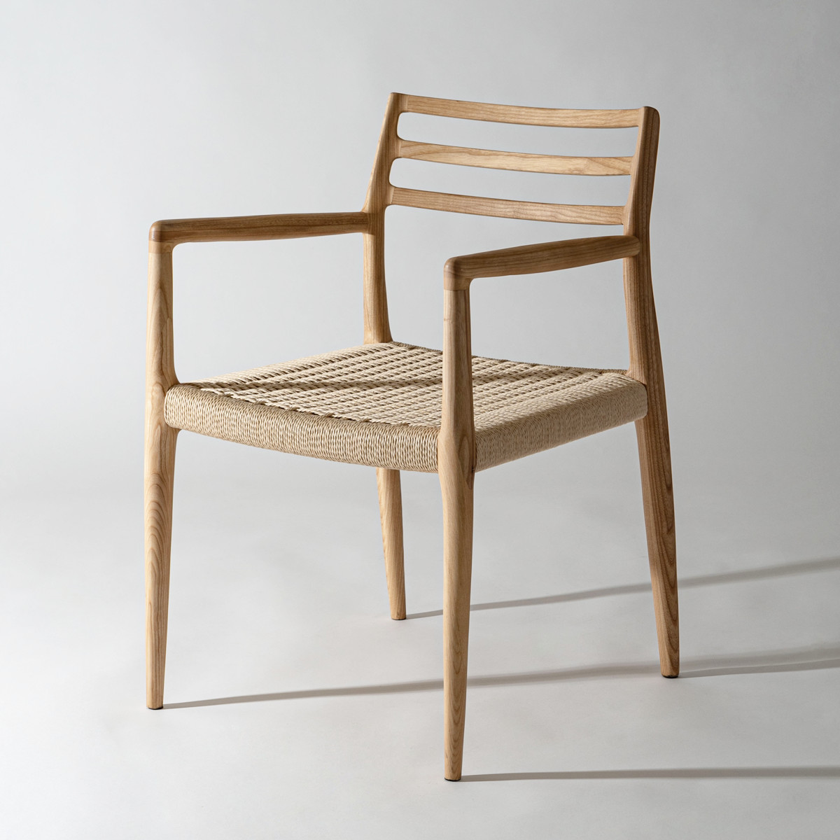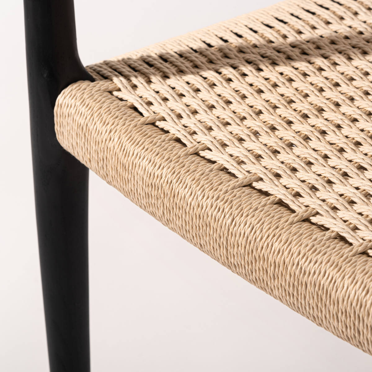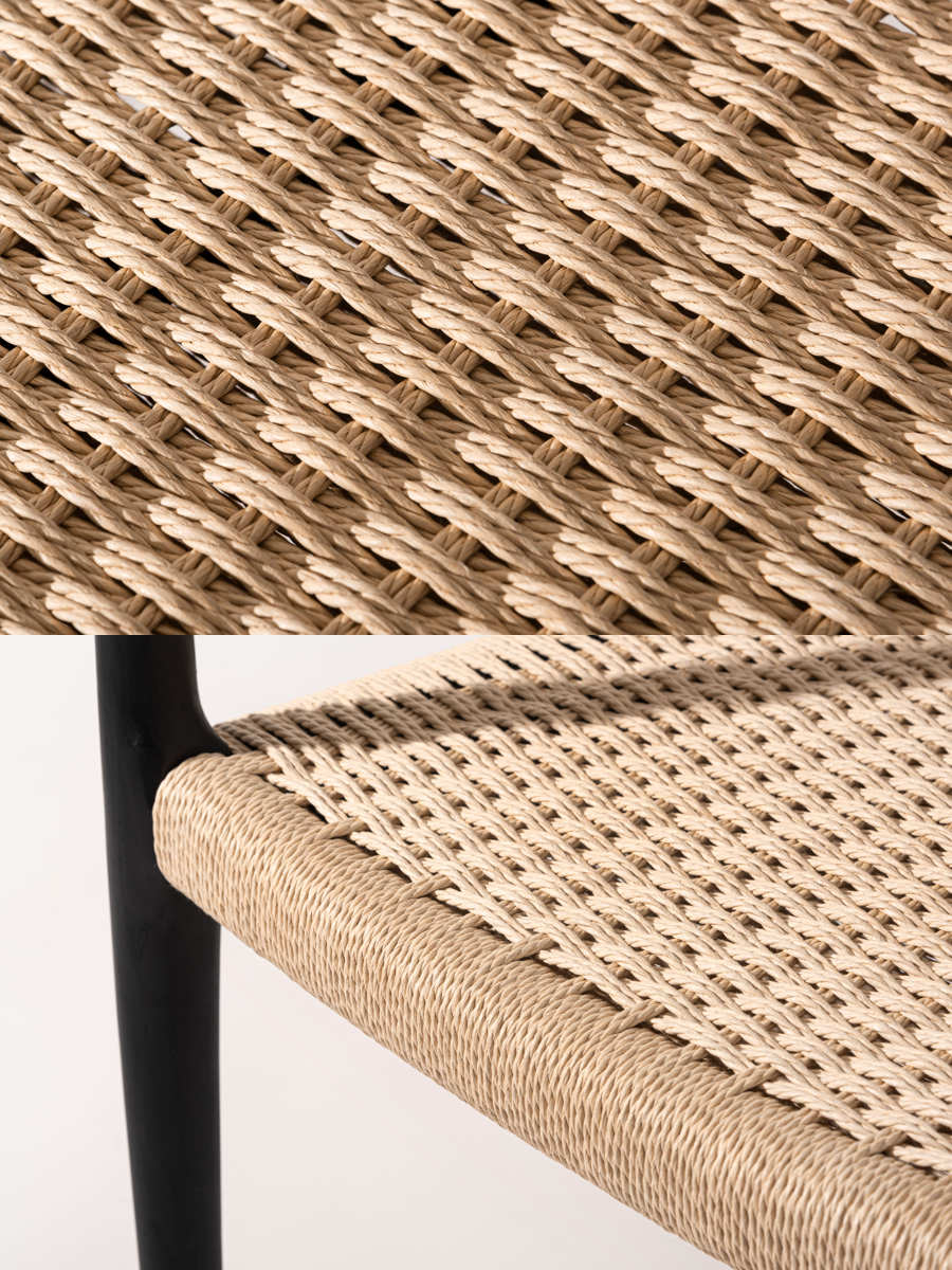 座面にぺーパーコードを使用したチェアです。ぺーパーコードは樹脂を含ませてねじった紙紐のことで、長く使うほどにお尻にフィットしてくる座り心地の良さが魅力です。革やファブリックとは一味違った、自然で軽やかな風合いをお楽しみいただけます。
