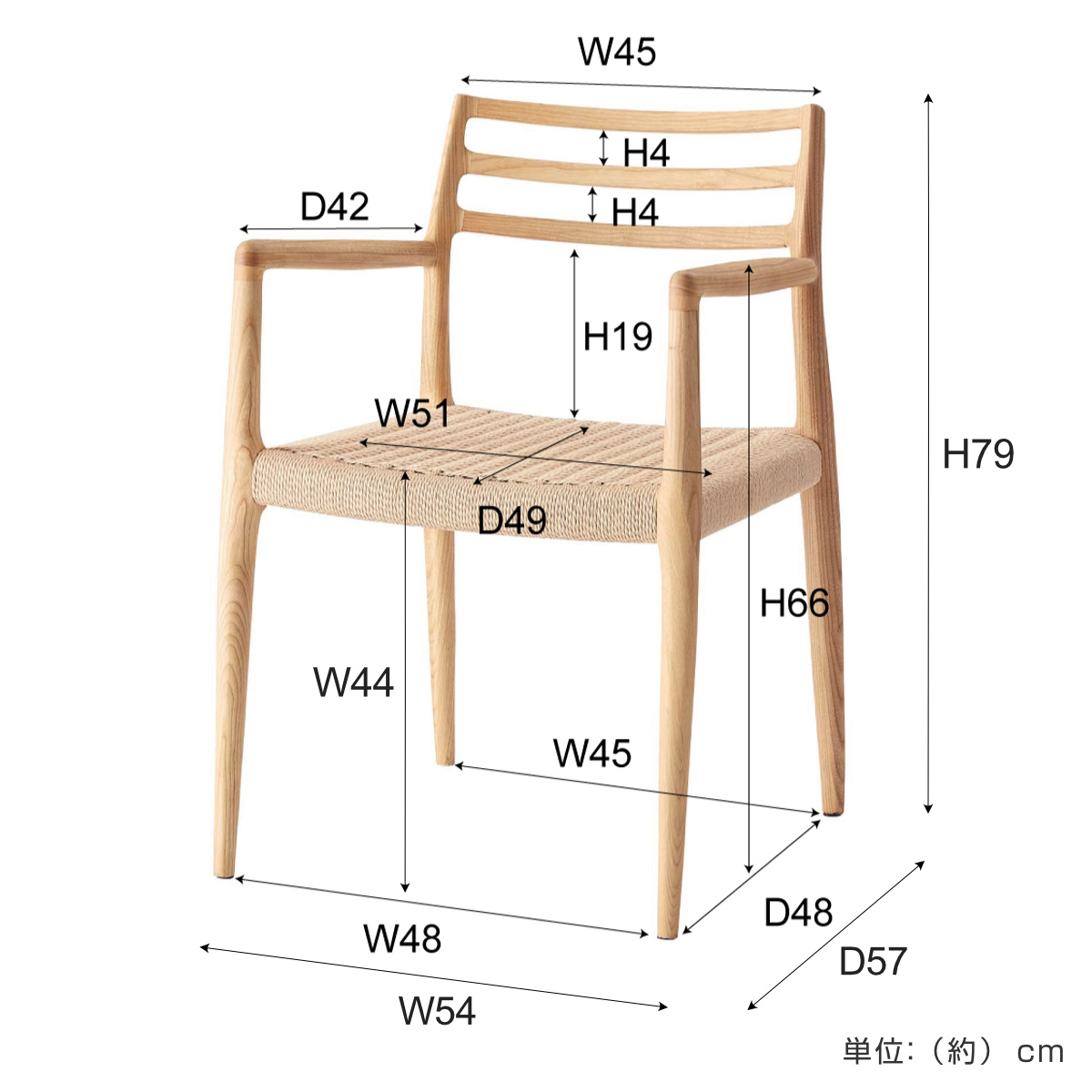 | 材質 | 天然木(アッシュ)、ペーパーコード 塗装:ウレタン塗装 |