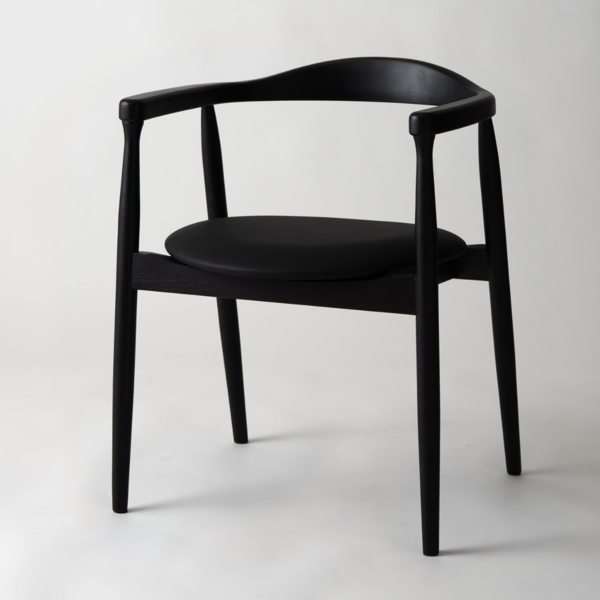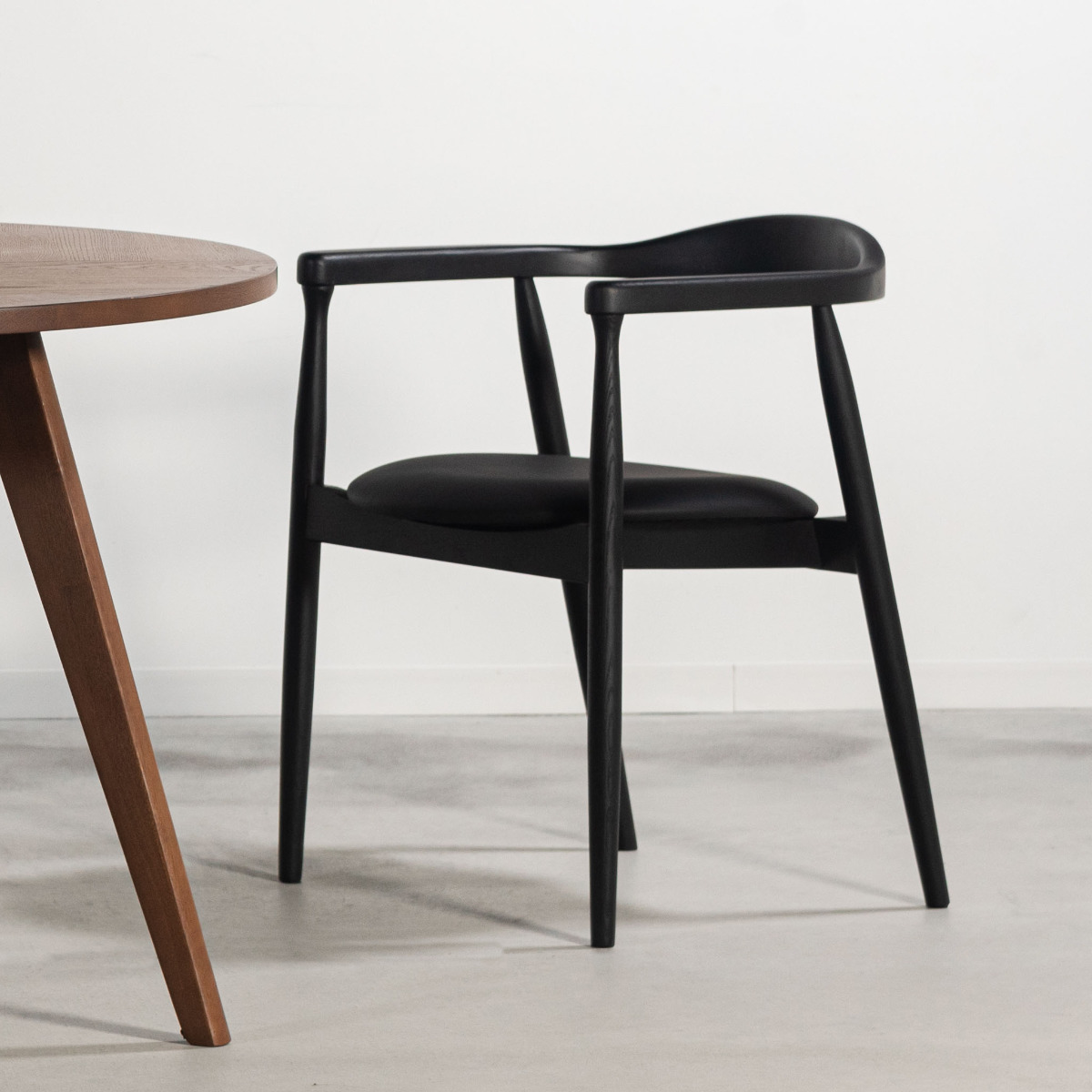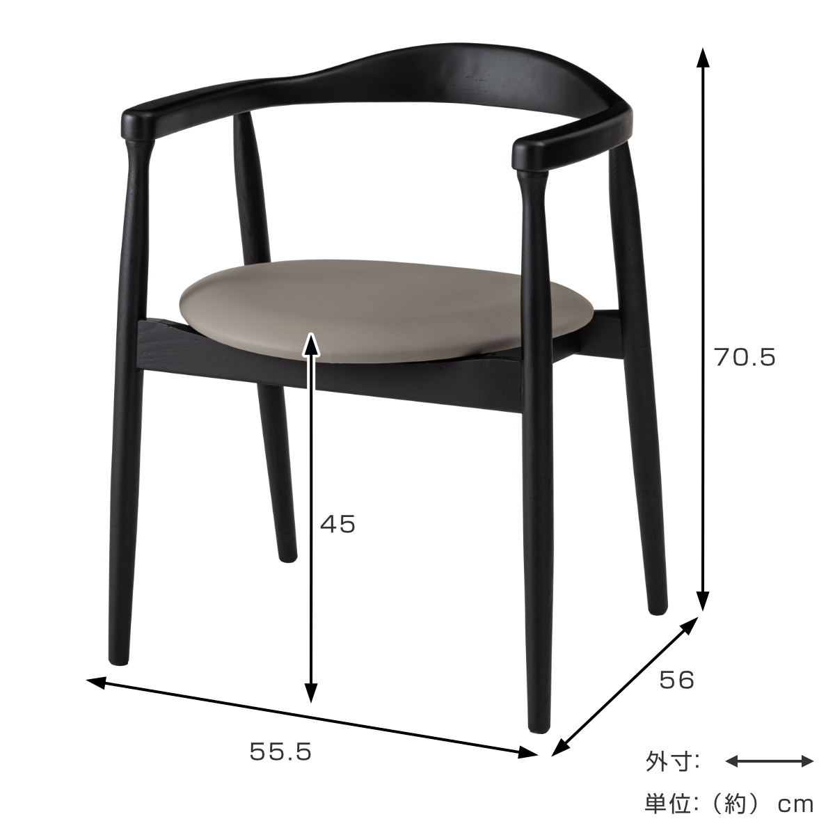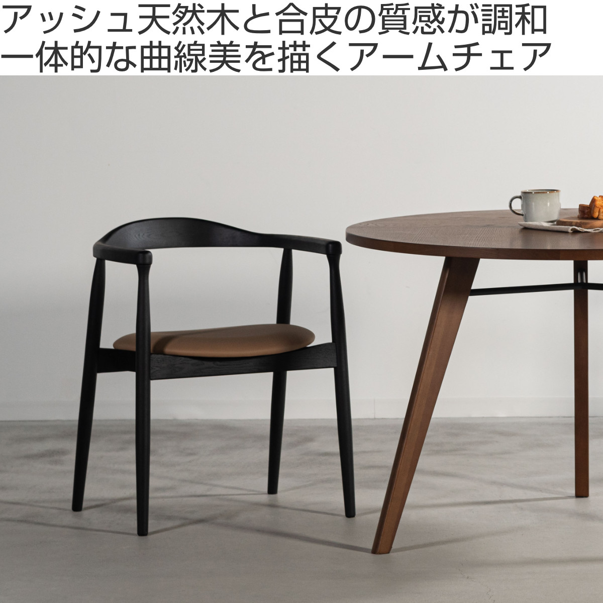 form ダイニングチェア 座面高45cm ローゼル アームチェア ( チェア ダイニング イス 椅子 木製 天然木 食卓椅子 肘掛け 完成品 レザー調 いす 食卓 リビング リビングチェア 木製チェア アッシュ ) 【ブラック】