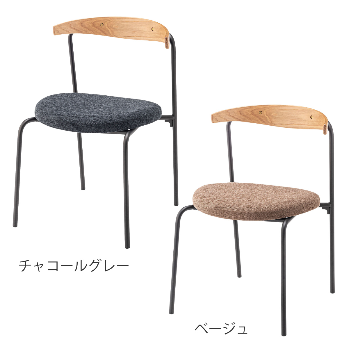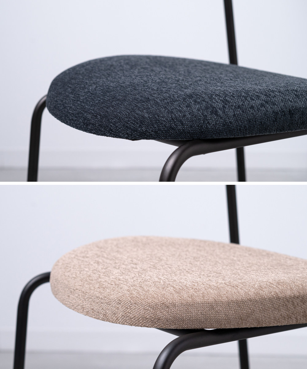 ファブリック素材の座面は、チャコールグレーとベージュの2色展開。お部屋になじみやすい色合いで、触れたときにひんやりしにくく、快適な座り心地です。自然な織りの風合いが、程よいカジュアルさを添えます。