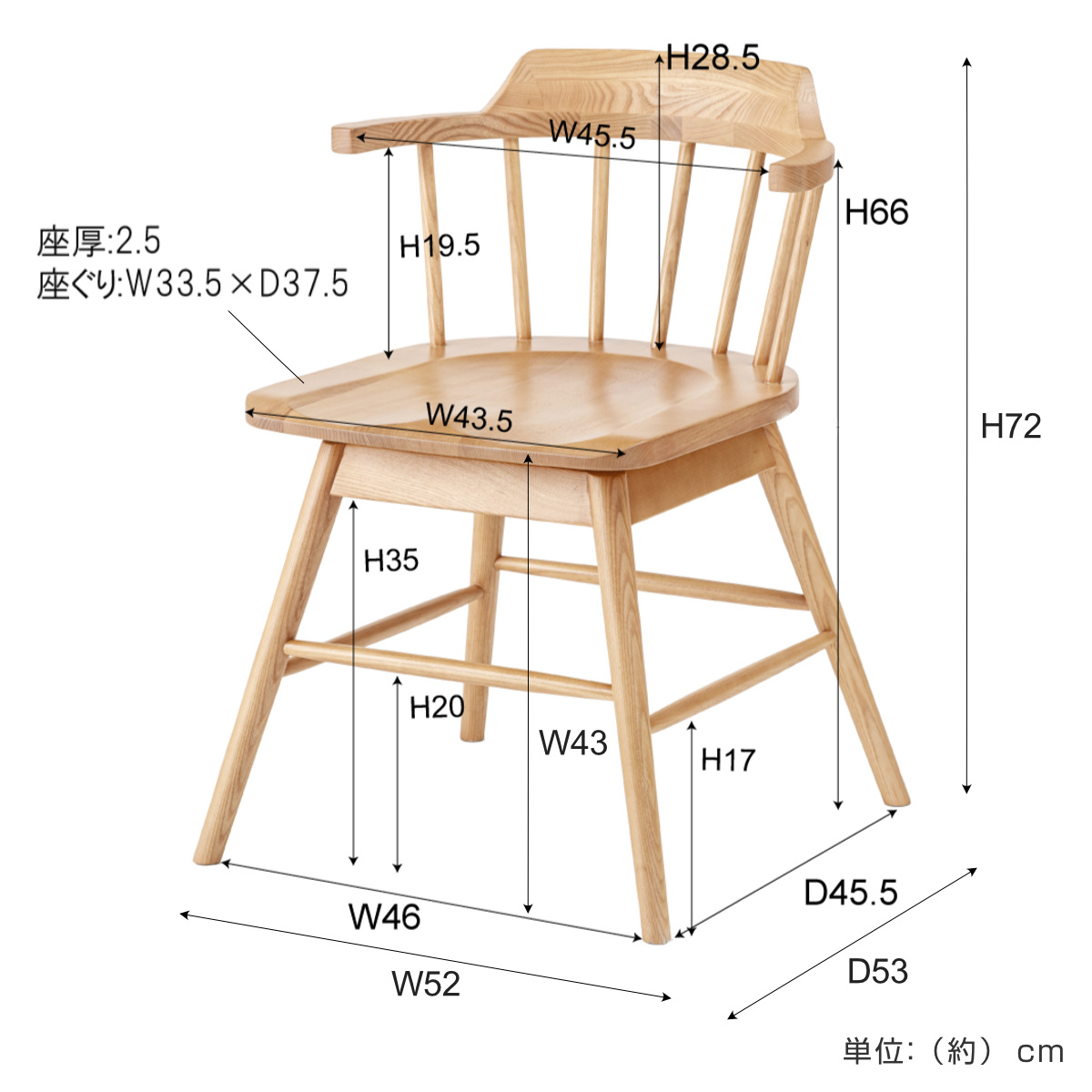| サイズ | 約 幅52×奥行53×高さ72(cm) 座面高:約 43(cm) |