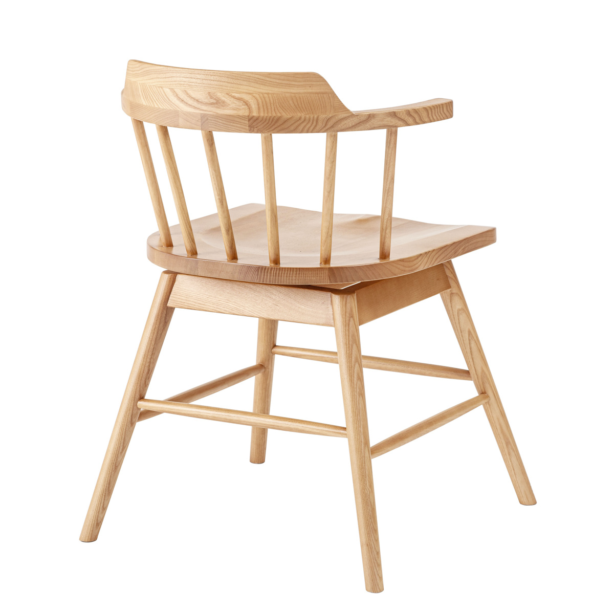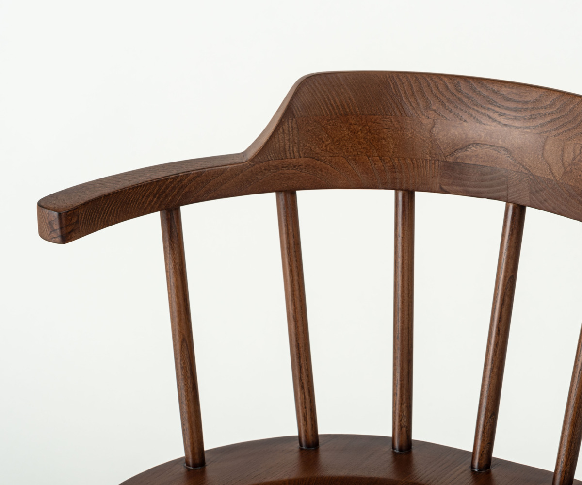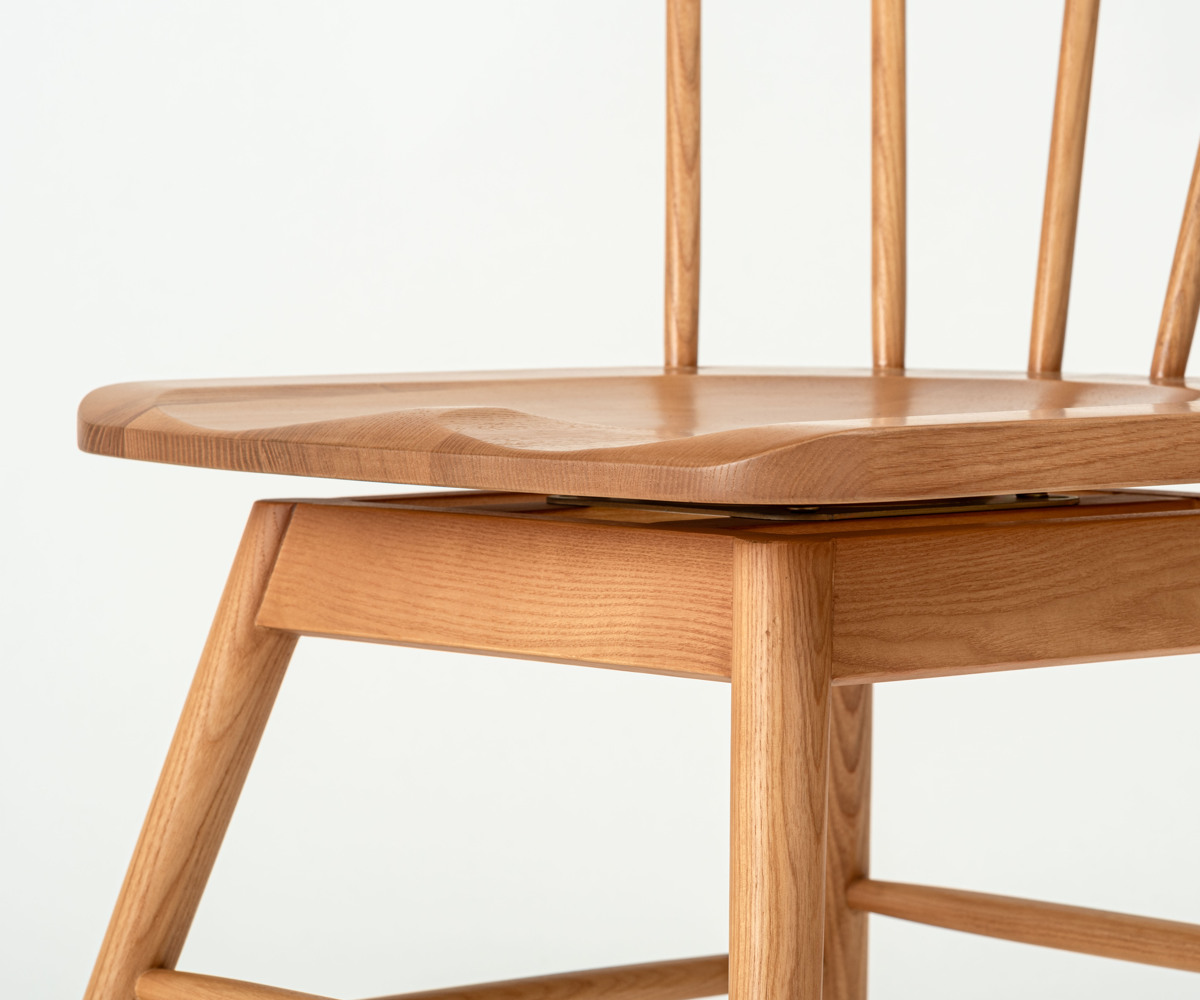 イギリス生まれの伝統的な椅子「ウィンザーチェア」に360度回転タイプが登場しました。ウィンザーチェアの特徴である扇形の背もたれやハの字のフォルムは変えず、座面が回転することで立ち座りがスムーズになり、より使いやすいチェアに進化しています。