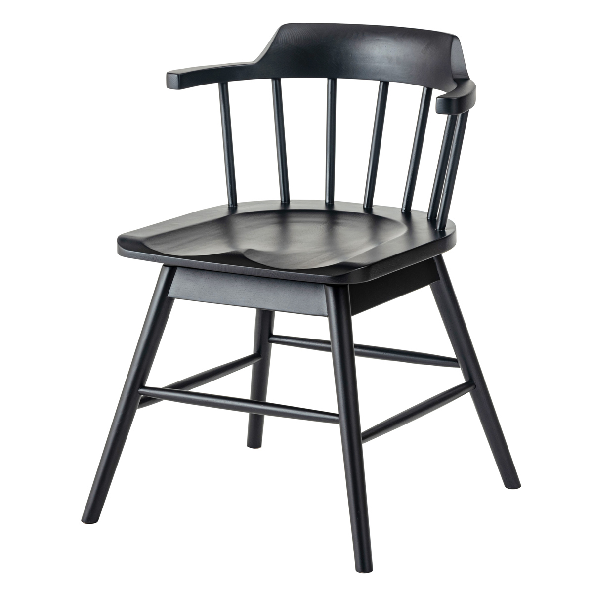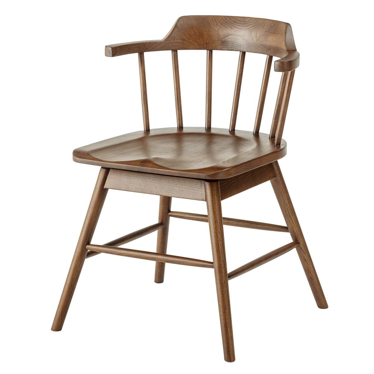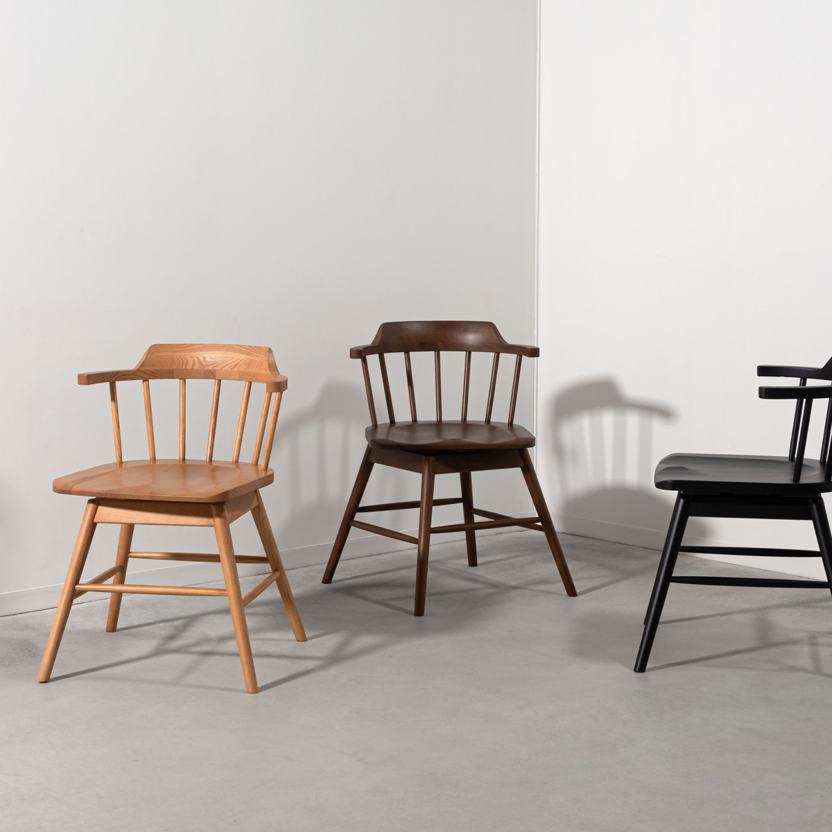 イギリス生まれの伝統的な椅子「ウィンザーチェア」に360度回転タイプが登場しました。ウィンザーチェアの特徴である扇形の背もたれやハの字のフォルムは変えず、座面が回転することで立ち座りがスムーズになり、より使いやすいチェアに進化しています。