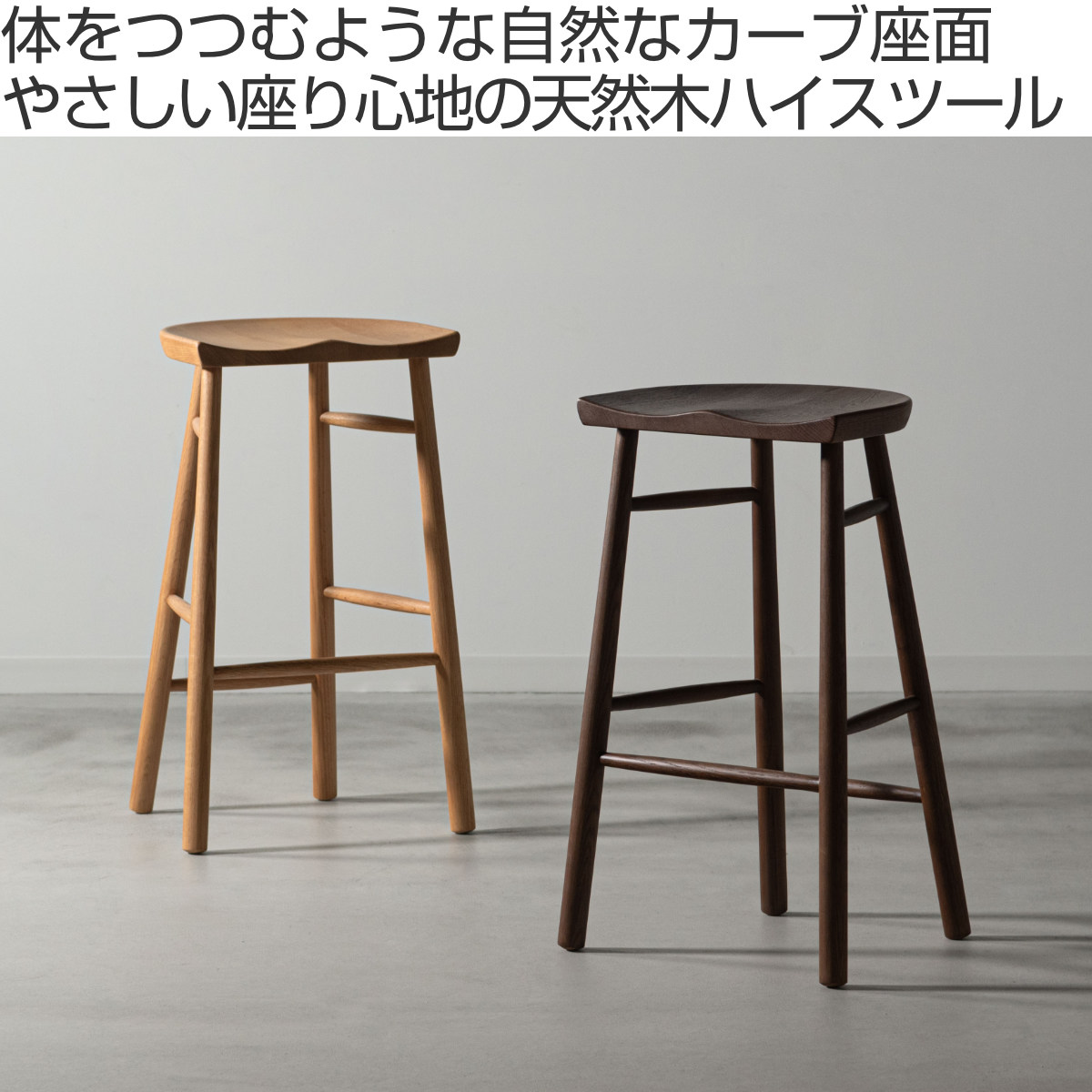 form ハイスツール 座面高69.5cm 木製 ドルティ ( 天然木 オーク カウンターチェア ハイチェア キッチンチェア バーチェア 完成品 1人掛け チェア チェアー イス 椅子 いす 腰掛け キッチン 背もたれなし 座面 カーブ リビング ) 【ブラウン】