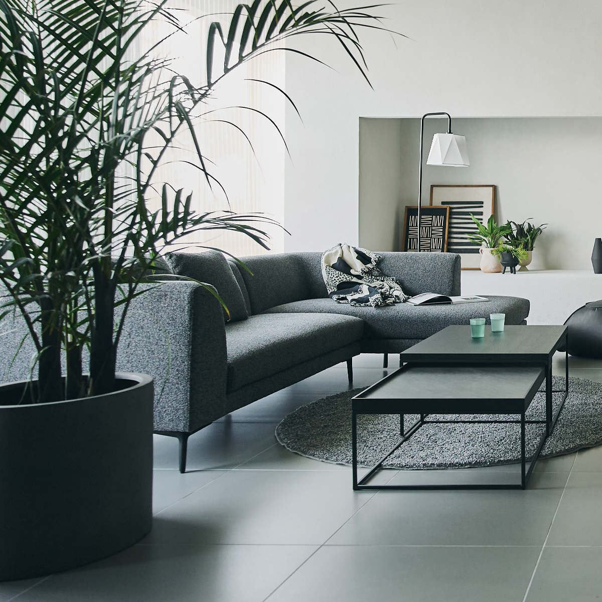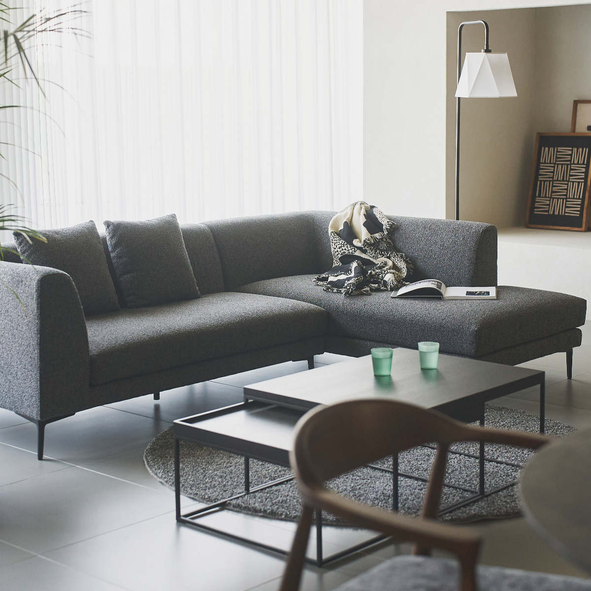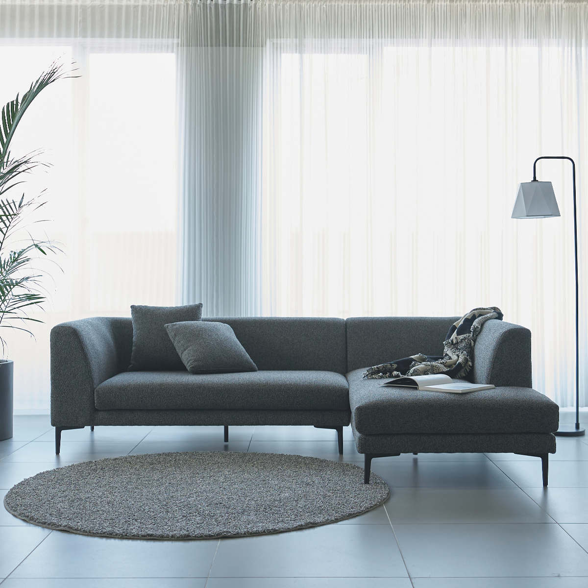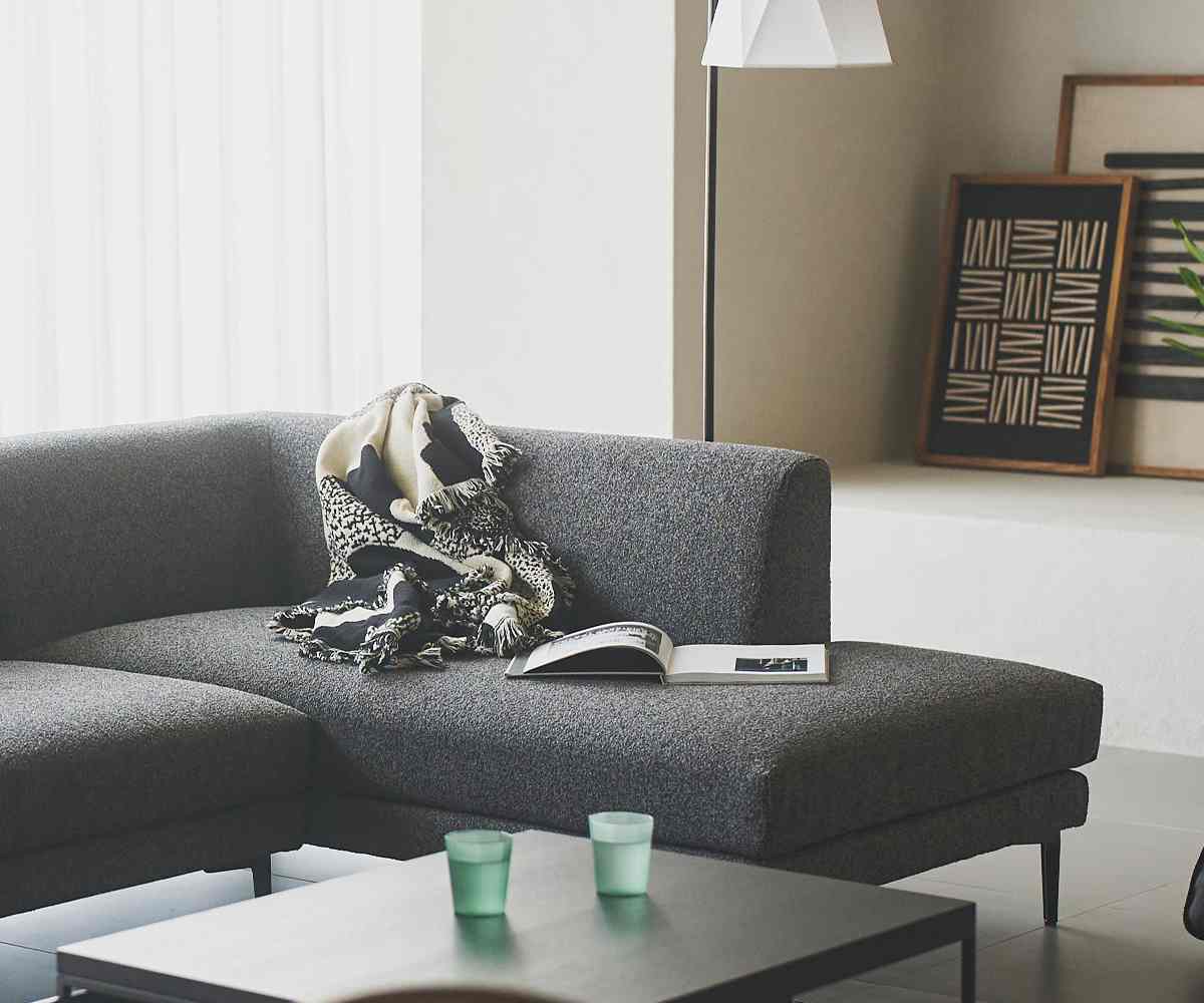 洗練されたフォルムが印象的なカウチソファです。空間に置くだけで、モダンで上質な雰囲気を演出します。