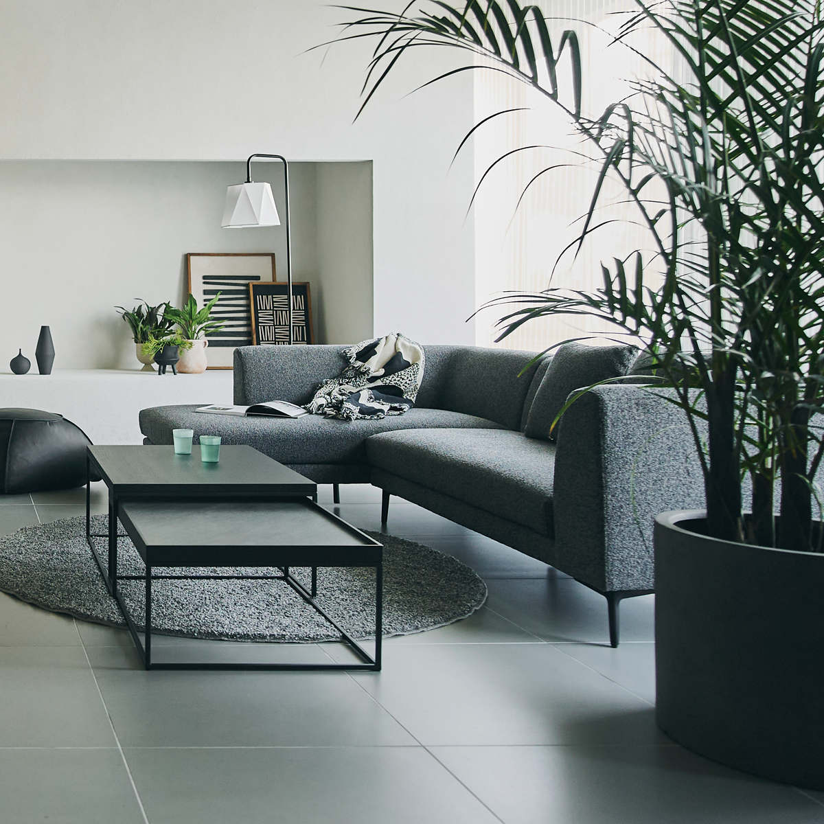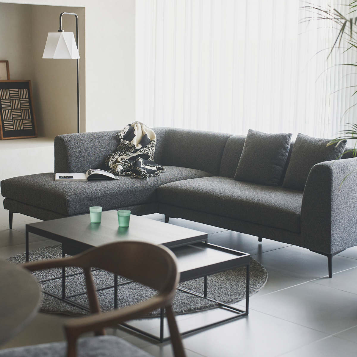 洗練されたフォルムが印象的なカウチソファ。空間に置くだけで、モダンで上質な雰囲気を演出します。