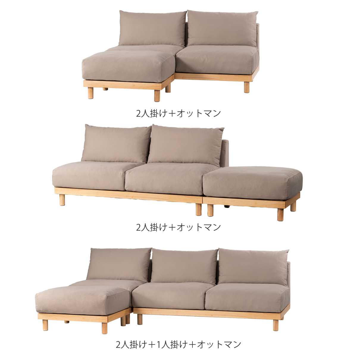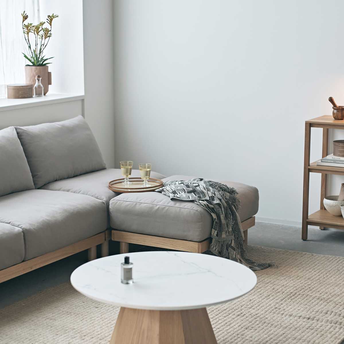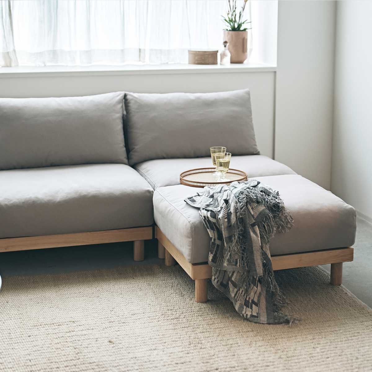 同シリーズのソファと組み合わせることで、カウチソファのようなレイアウトも可能。暮らしやお部屋の広さに合わせて、自由な配置を楽しめます。