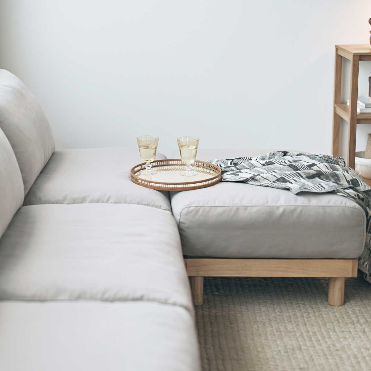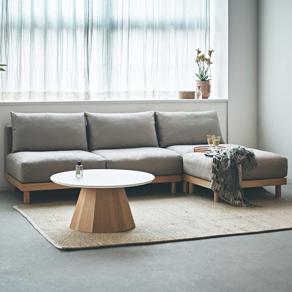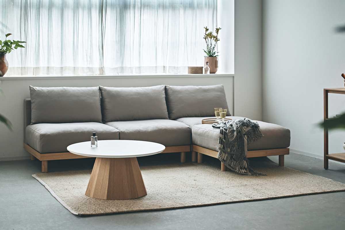 同シリーズのソファと組み合わせることで、カウチソファのようなレイアウトも可能。暮らしやお部屋の広さに合わせて、自由な配置を楽しめます。