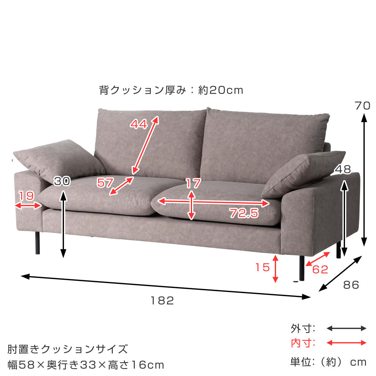 | サイズ | 約 幅182×奥行86×高さ70(cm) 座面高:約 30(cm) |