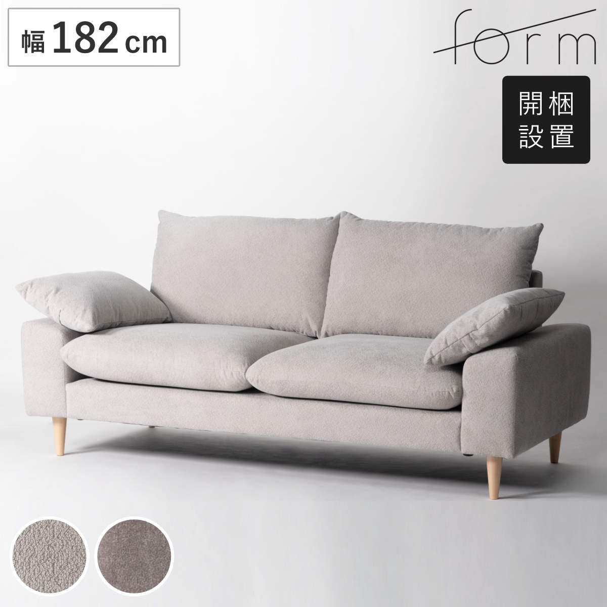 form バーベナ ソファ 幅182cm 3人掛け 木製脚 ( 開梱設置 ローソファ ソファー 木製フレーム 天然木 リビングソファ 肘付き 座面 広め クッション付き ファブリック 脚付き 肘置き ポケットコイル リビング ) 【ライトグレー】