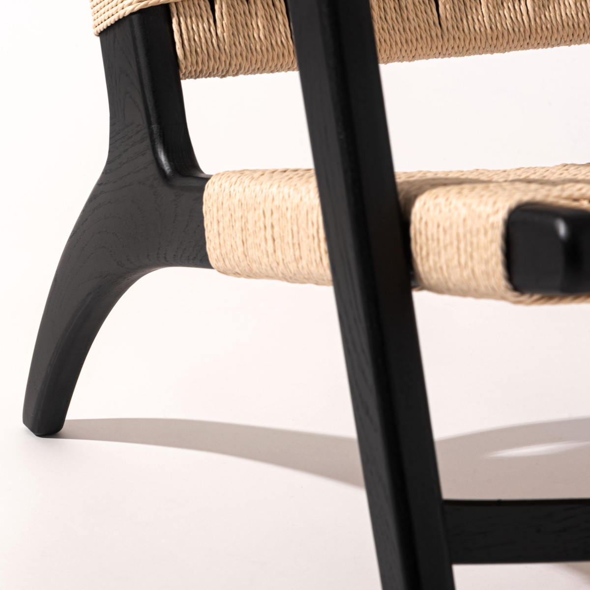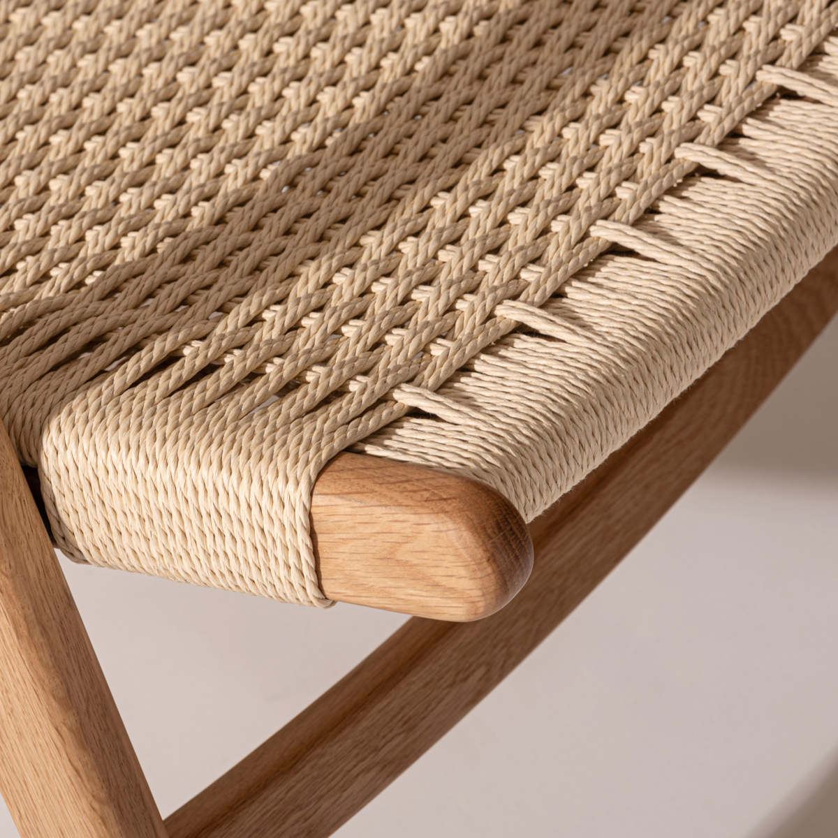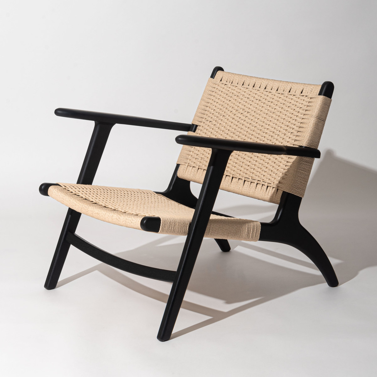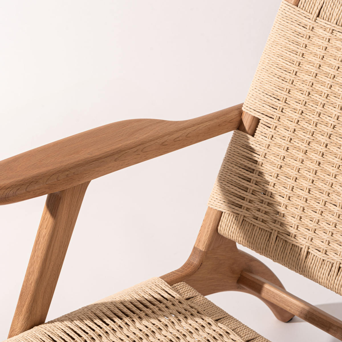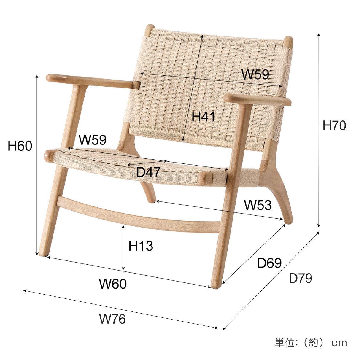 オーク材のフレームと、丁寧に編み込まれたペーパーコード座面を組み合わせたラウンジチェア。 自然素材ならではのあたたかみと、洗練された佇まいが魅力です。 シンプルながらも素材の美しさが際立ち、空間に落ち着きと品のある雰囲気を演出します。北欧テイストやナチュラルインテリアはもちろん、上質感のあるリビングや書斎にも心地よく馴染みます。