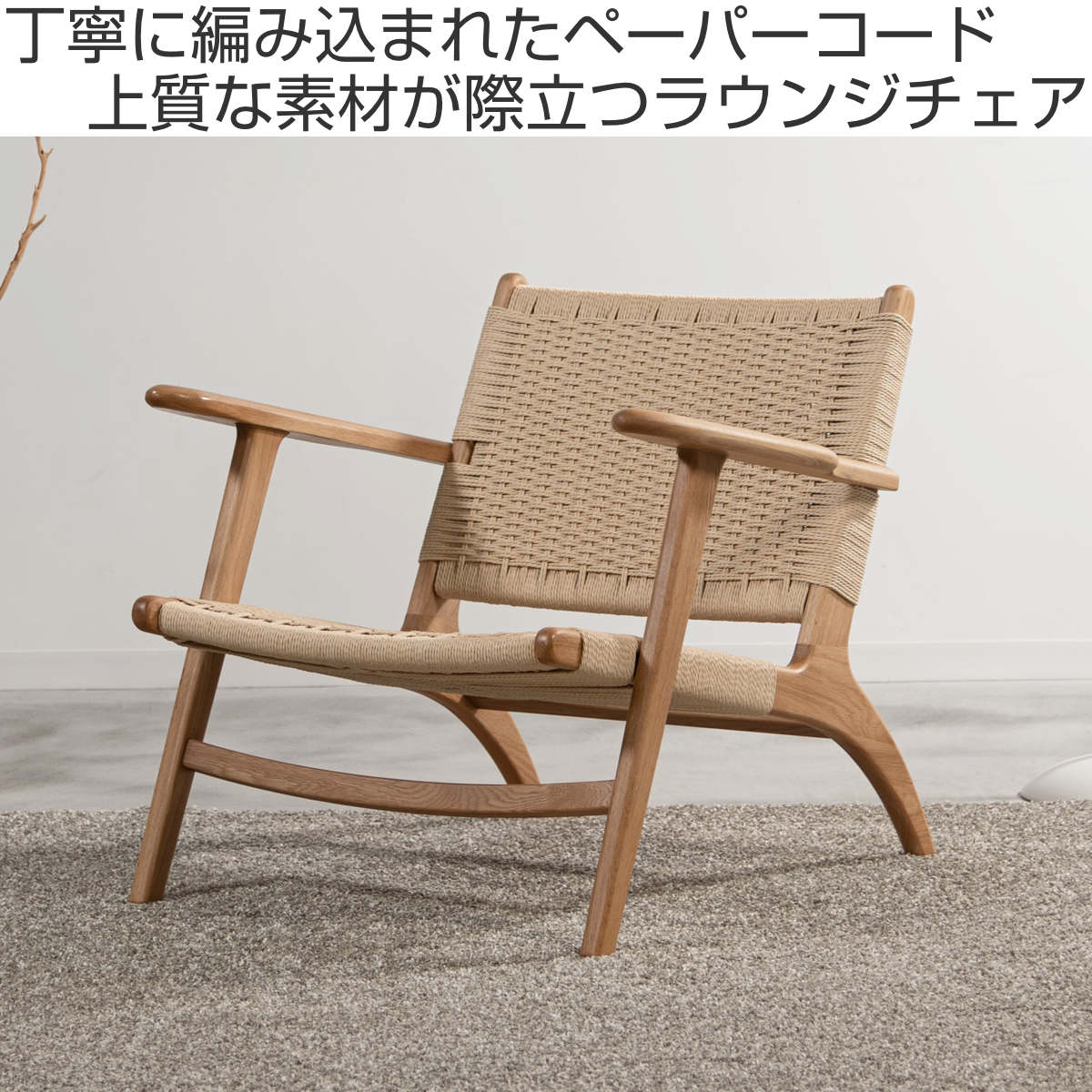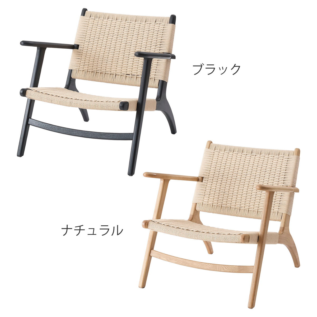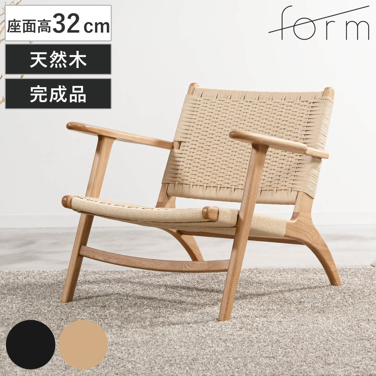 form ラウンジチェア 1人掛け ペーパーコード アンゼ ( パーソナルチェア 木製 天然木 チェアー イス 椅子 いす 完成品 低め設計 通気性 リビングチェア 肘掛け ロビー 書斎 リビング オーク 木製フレーム 幅広 ) 【ブラック】