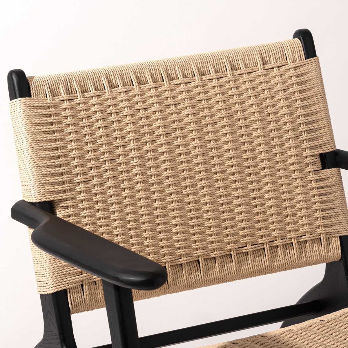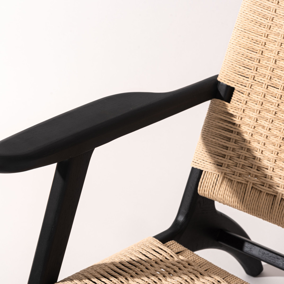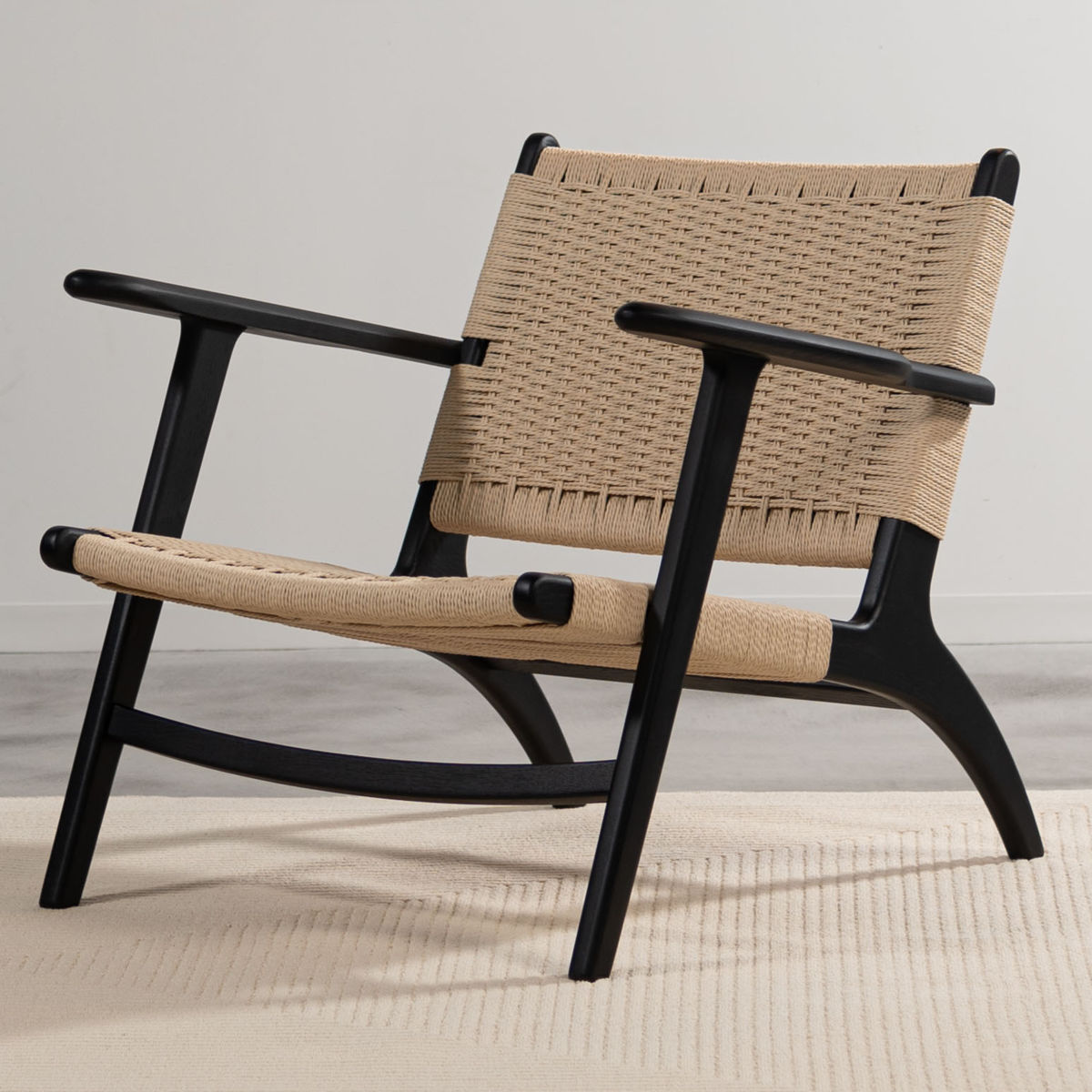 form ラウンジチェア 1人掛け ペーパーコード アンゼ ( パーソナルチェア 木製 天然木 チェアー イス 椅子 いす 完成品 低め設計 通気性 リビングチェア 肘掛け ロビー 書斎 リビング オーク 木製フレーム 幅広 ) 【ブラック】
