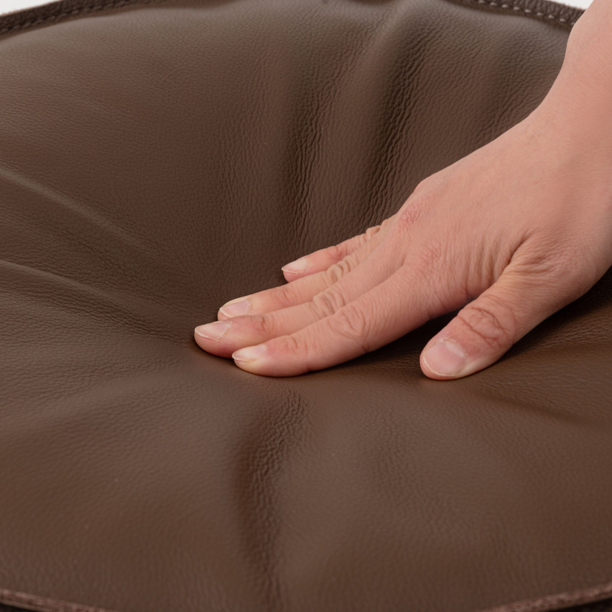 表面には本革を使用し、しっとりとした触り心地に。使い込むほどに味わいが増し、長く愛用できる素材です。