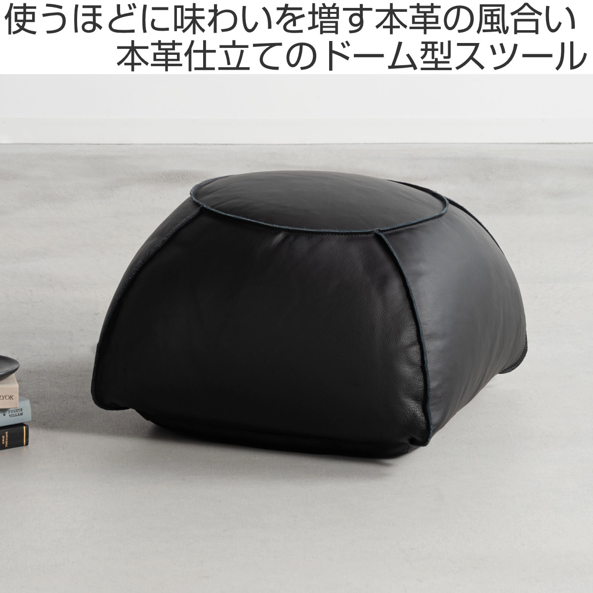 ステッチが映えるドーム型の本革スツール