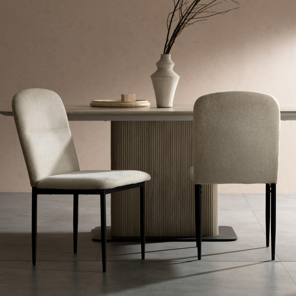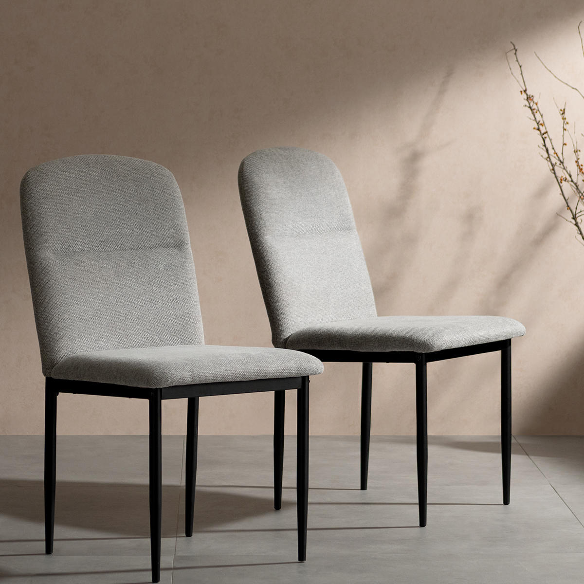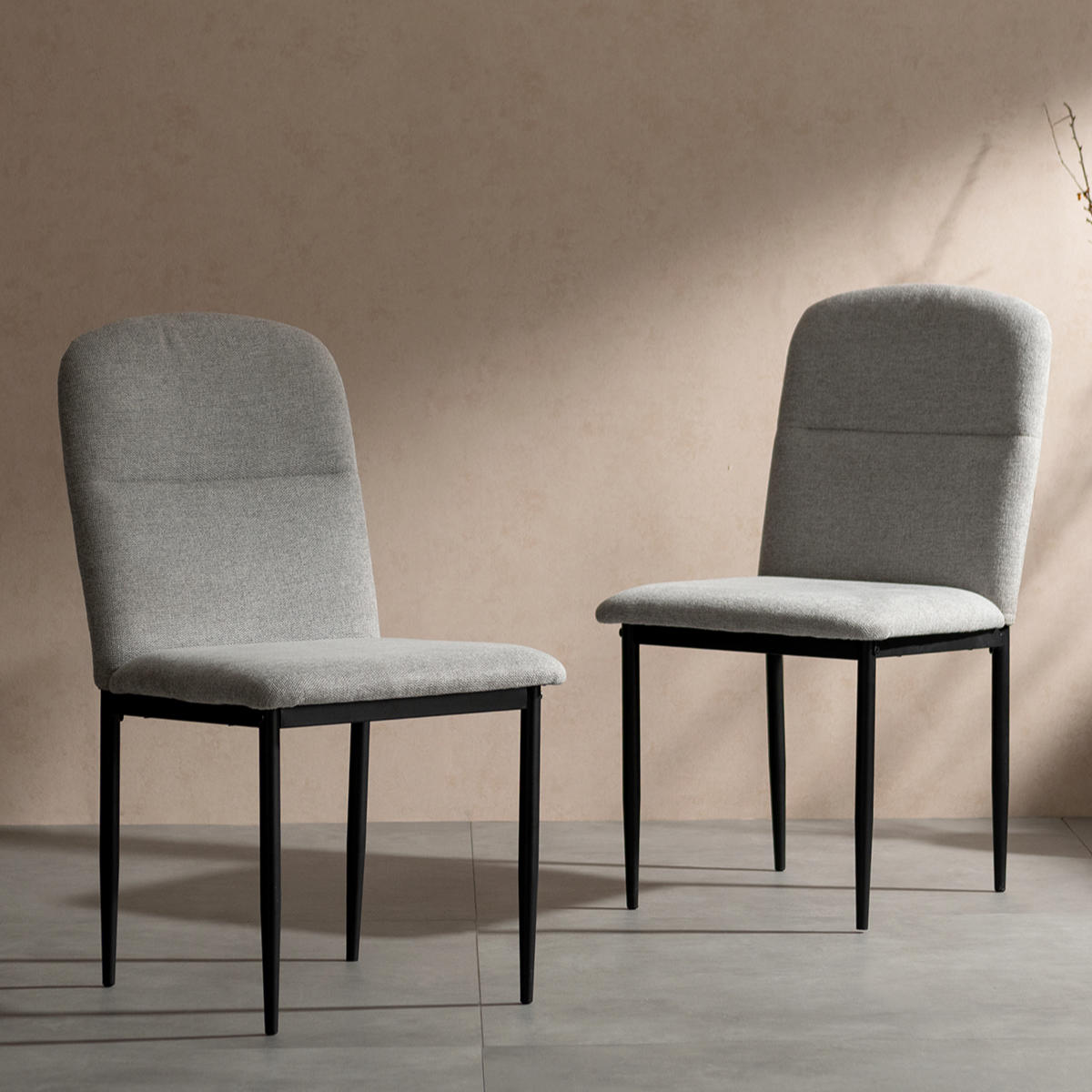 マットなブラックのスチール脚が全体を引き締め、モダンで洗練された印象に。先端に向かって細くなるスリムなデザインが、軽やかでスタイリッシュな佇まいを演出します。
