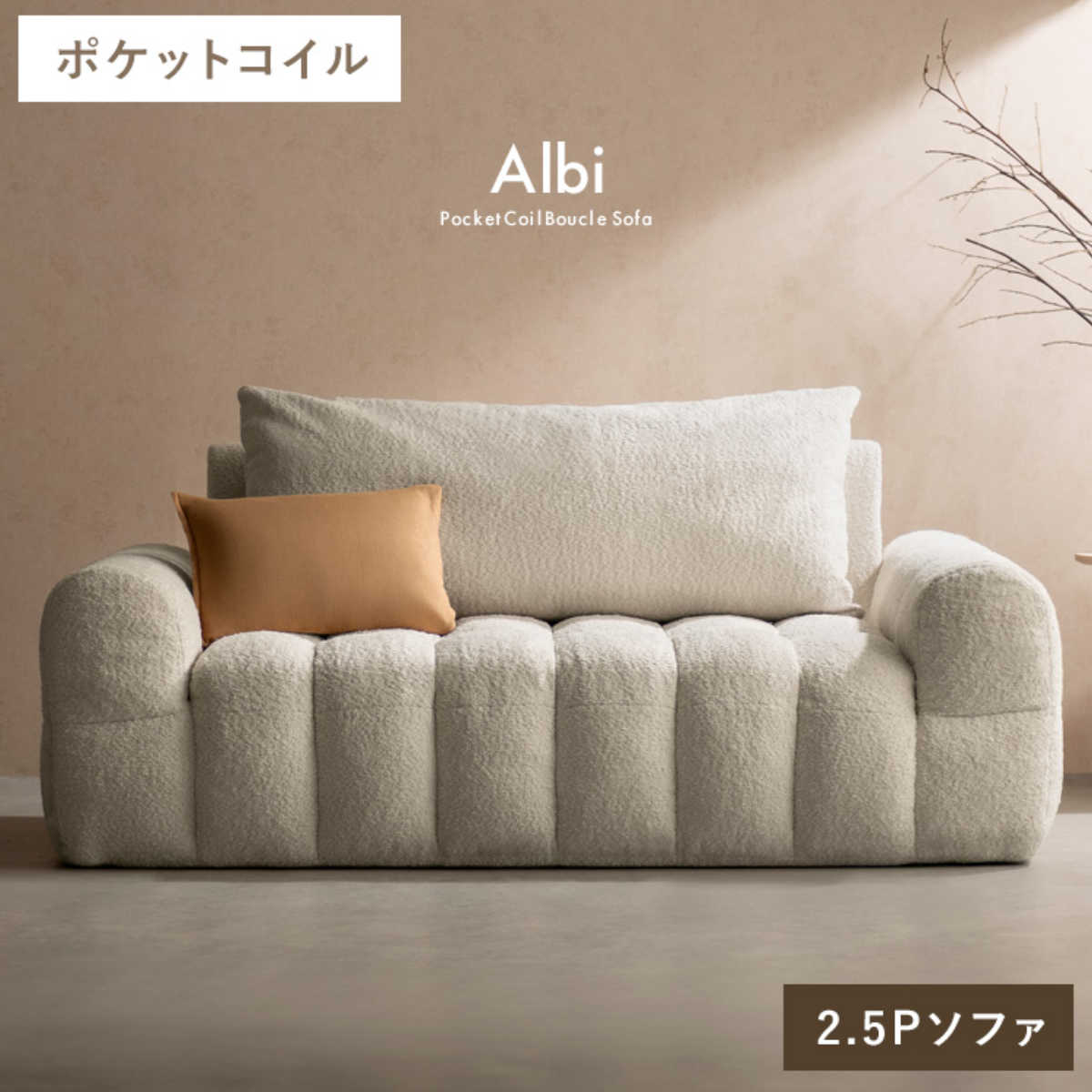 ソファ 2.5人掛け Albi ブークレ生地 Signature Studio ( ソファー ローソファ リビングソファ フロアソファ 脚なし 完成品 ファブリック 2人掛けソファ ふわふわ 座面 広い ポケットコイル 座り心地 快適 肘置き )