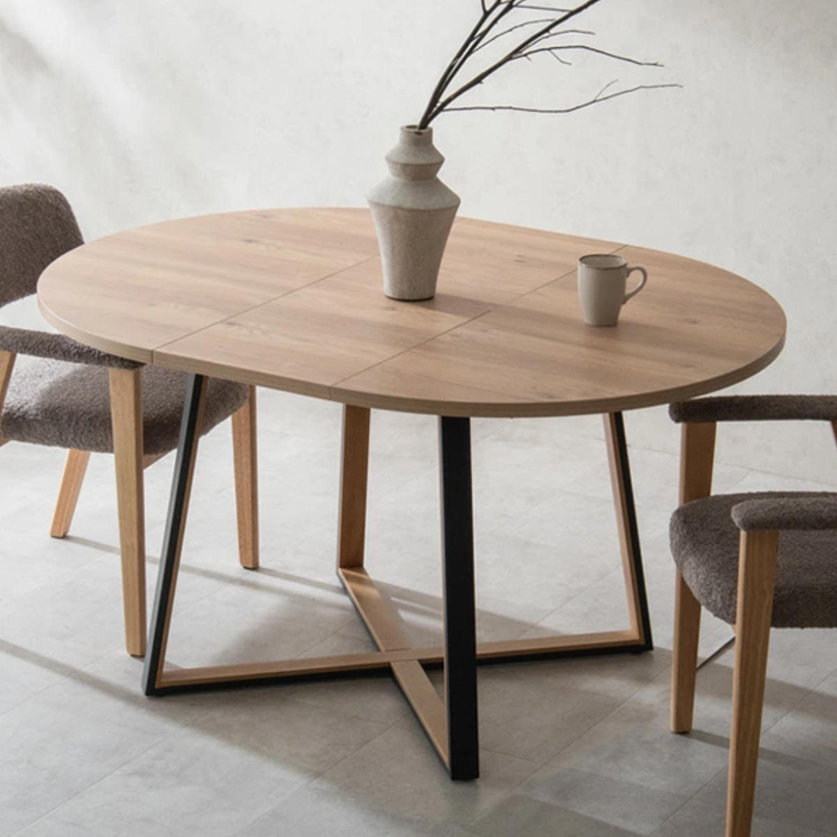 普段は省スペースで使えるラウンドテーブルとして、必要な時は幅135cmのオーバルダイニングテーブルへ。