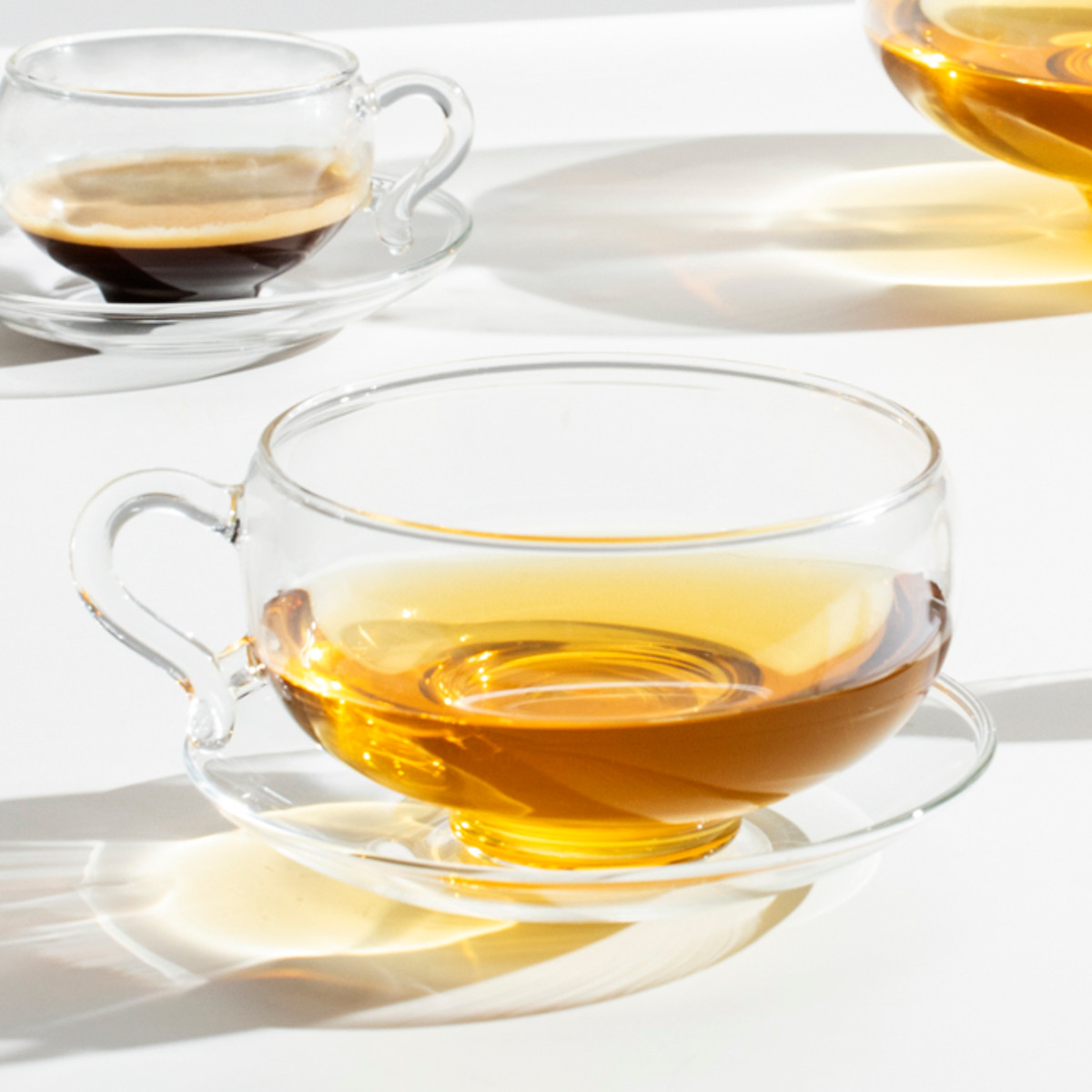 カップとソーサーは透明感のある耐熱ガラスを使用しています。飲み物の色合いも美しく引き立てます。