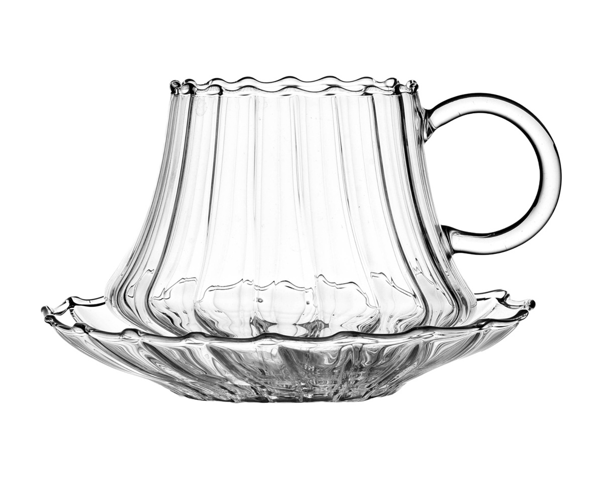 イッケンドルフ 9359045 FOLK ティーc/s ( 300ml 食洗機対応 ichendorf ガラス 食器 ティーカップ ソーサー付き ハンドメイド おしゃれ プレゼント ギフト )