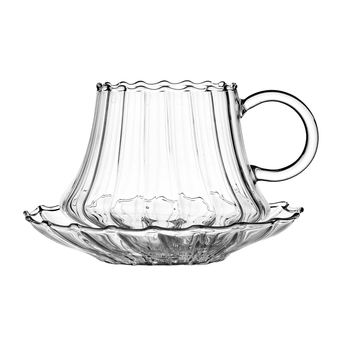 透明感のある耐熱ガラスを使用しています。温かい飲み物にも対応し、見た目の繊細さと実用性を兼ね備えています。