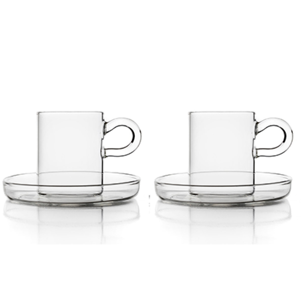 透明感のあるガラス製コーヒーカップ&ソーサー ペアセット 100ml