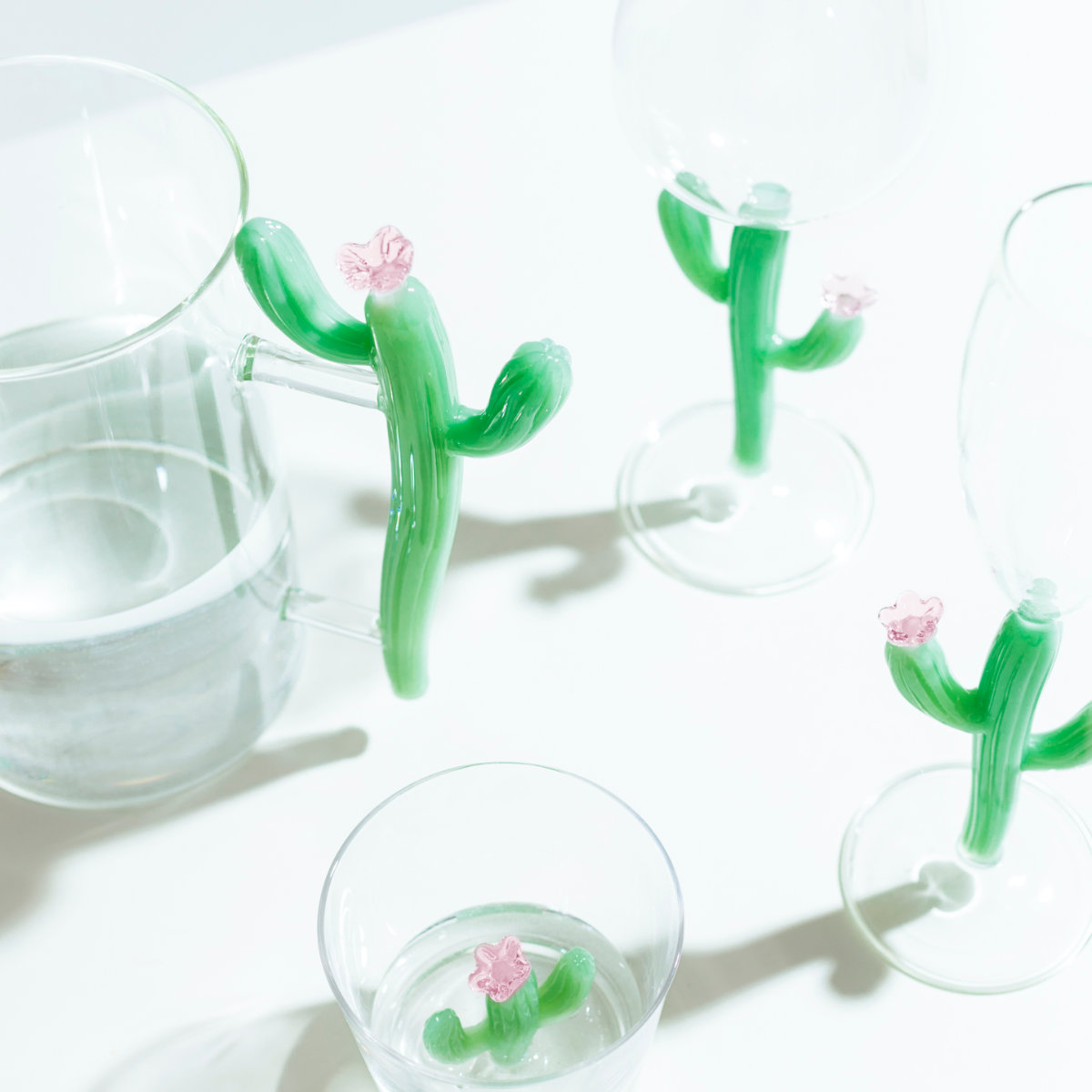 サボテンなどの砂漠の植物をモチーフにしたデザインコレクションです。透明感のあるホウケイ酸ガラスの中に、カラフルで立体的な植物モチーフを閉じ込めた、遊び心あふれる造形で、飲み物や光によって表情が変わるのが特徴です。