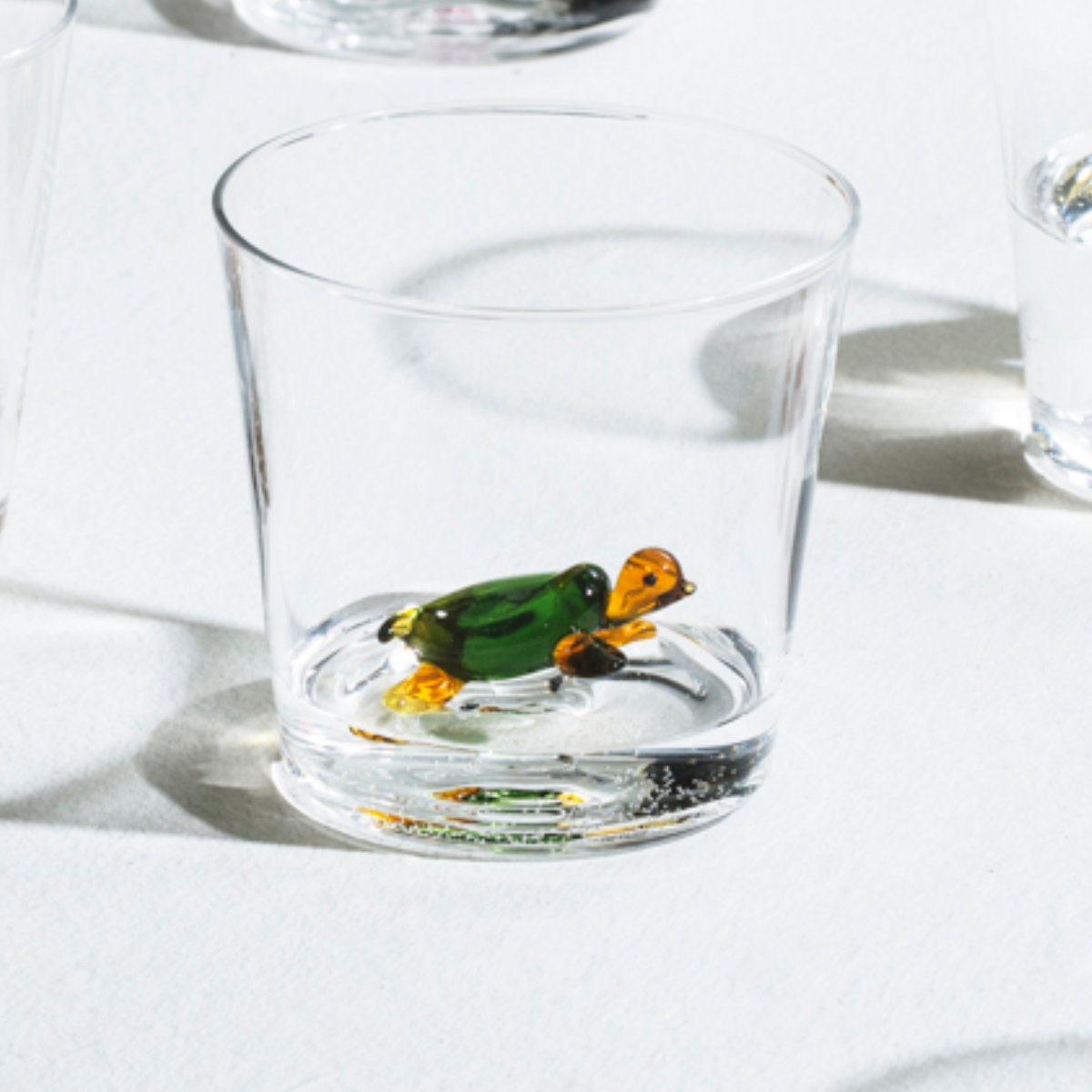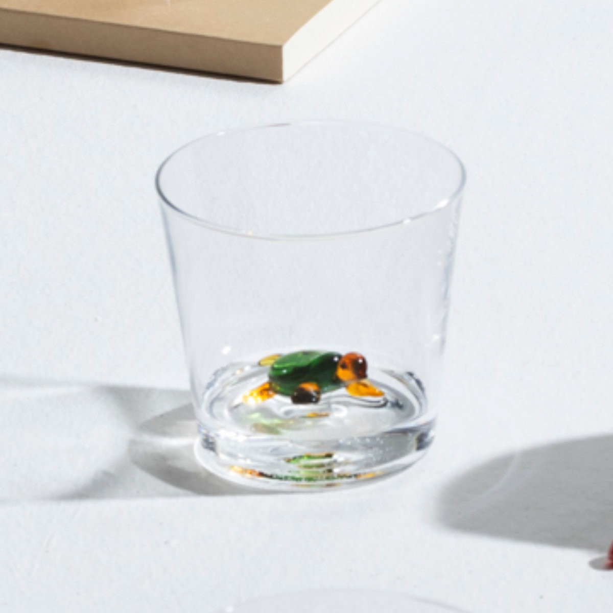 お水や炭酸水、ジュース、アイスコーヒーなどを気軽に楽しめるサイズ感です。ハンドメイドならではの軽やかなガラスと、グラスの中に見えるアニマルが、いつものドリンクタイムを特別にしてくれます。