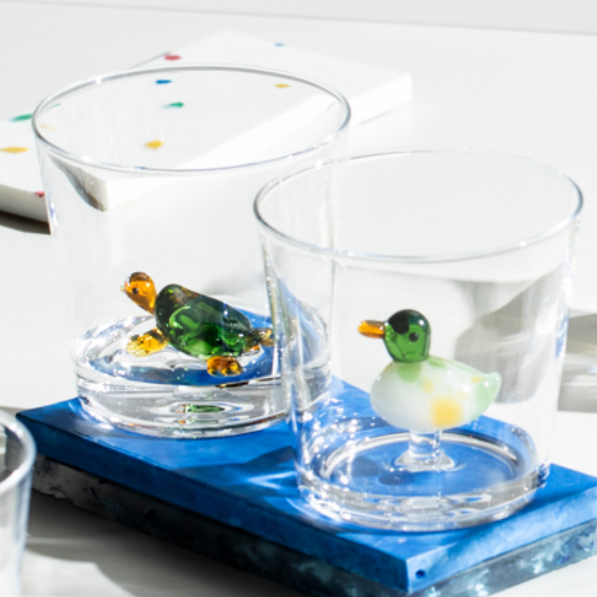 イタリアの老舗ガラスブランドICHENDORF MILANO(イッケンドルフ・ミラノ)が手掛ける、遊び心あるデザインのガラスウェアです。透明なガラスの中に動物モチーフがちょこんと佇み、日常のテーブルを楽しく彩ります。