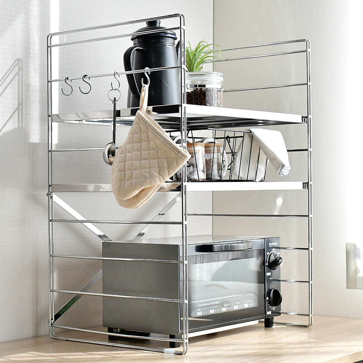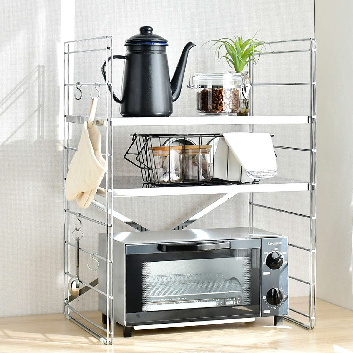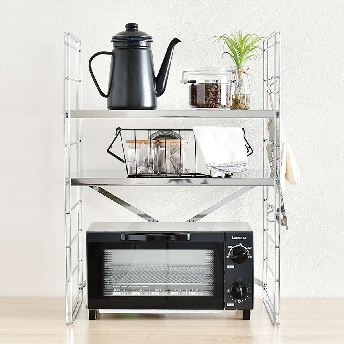 キッチンラック ダブルフレーム トースターラック 幅45cm 2段 ( マルチラック トースター上ラック ステンレス棚 家電ラック 日本製 スパイスラック シェルフ 可動棚 カウンダ―上 キッチン収納 トースター上収納 オーブンラック )