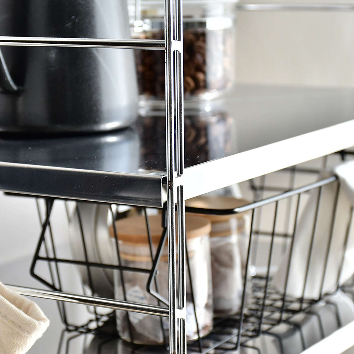 頑丈なダブルフレーム構造と清潔なステンレス棚で、家電や調理器具を安心して収納できます。キッチンを快適に整え、毎日の調理や片付けをよりスムーズにしてくれるスタイリッシュなラックです。