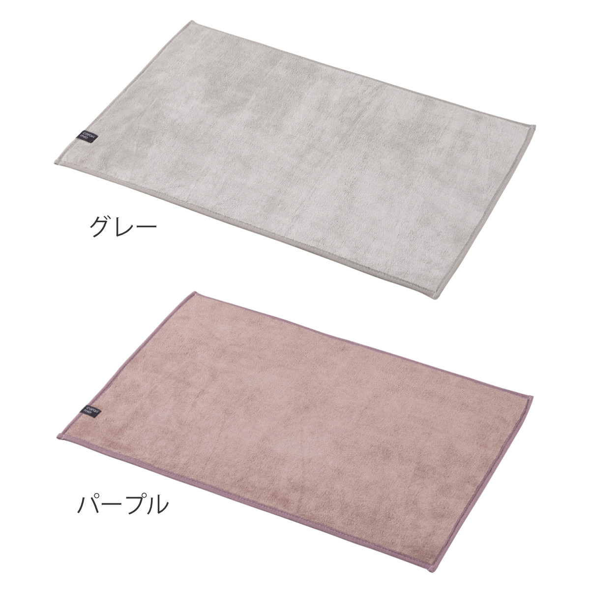 使う人数や設置場所に合わせて選べる、2サイズ展開です。扱いやすい40×60cmと、ゆったり使える70×70cmをご用意しています。カラーはグレーとパープルの2色です。どちらも洗面空間になじみやすい、落ち着いた色合いです。