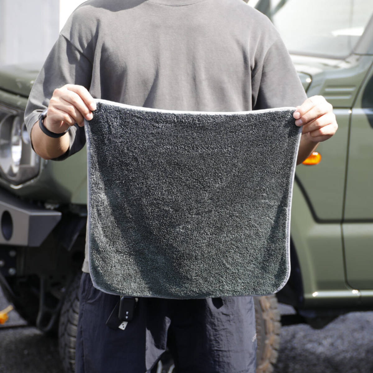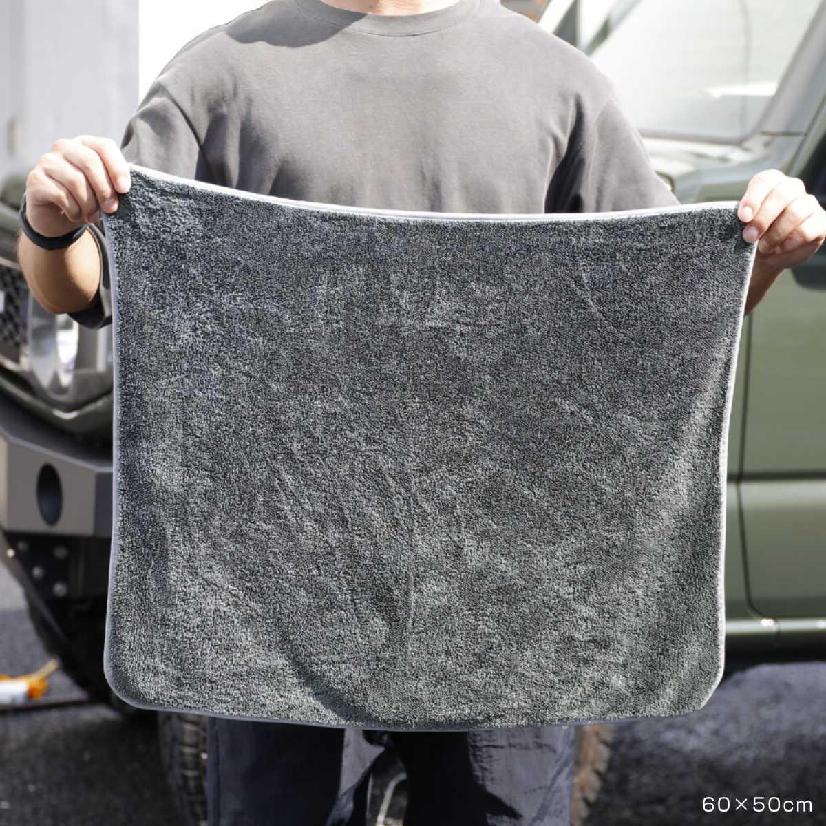 サイズは40×40cmと60×50cmの2種類をご用意しています。40×40cmは手に取りやすく、細かな部分やピンポイントのお手入れに最適です。60×50cmは広い面を一度に拭けるため、ボディやガラスなど面積のある場所でも効率よく作業できます。用途や使うシーンに合わせて選べるサイズ展開で、毎日のお手入れをより快適にします。