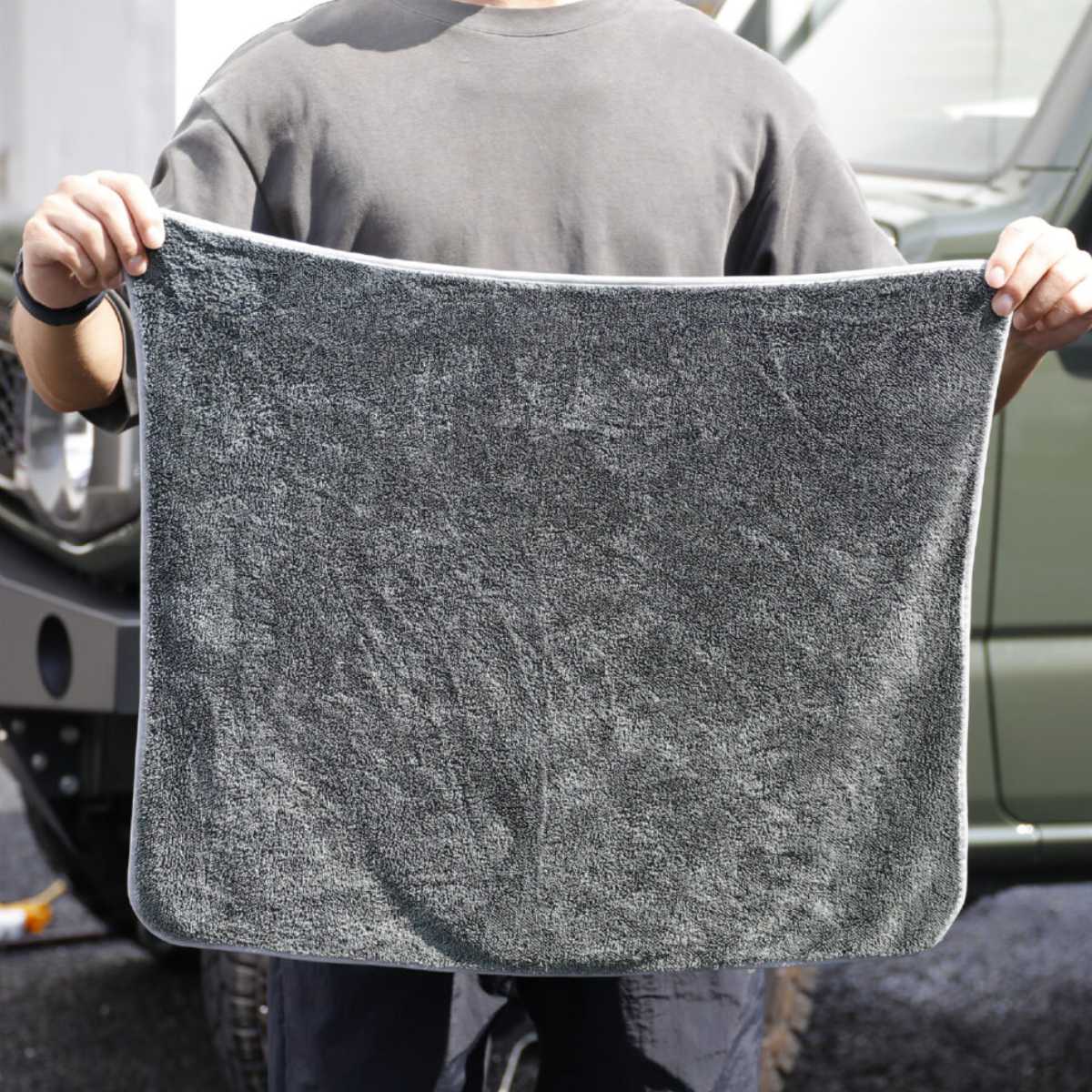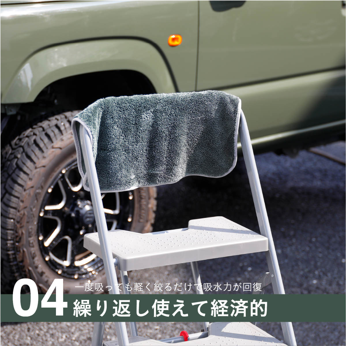 広い面を一気に拭き取れるサイズ感で、ボンネットやフロントガラスなど大きな面も効率よく拭き上げられ、作業時間の短縮につながります。用途別に使い分けたり、洗い替えとしても便利です。
