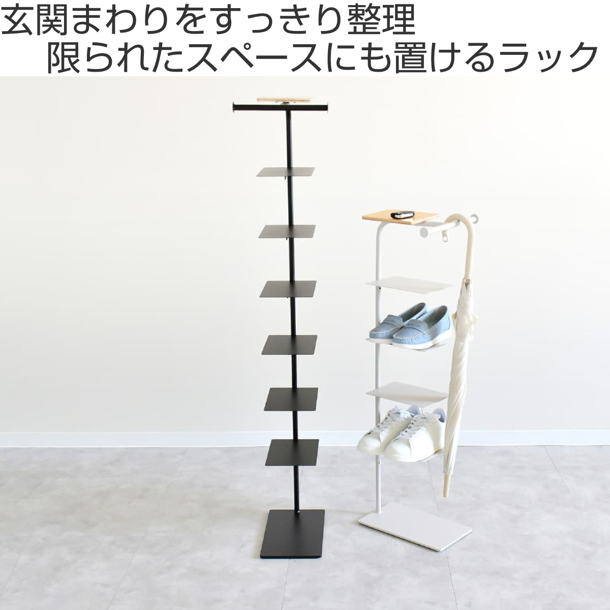 シューズラック 棚4枚タイプ Stack Rack+ rootis ( 靴 収納 スリッパ ラック オープンラック 玄関 傘 コンパクト おしゃれ 日本製 シューズ アイアン インテリア ディスプレイ スチール デザイン スタイリッシュ スリム ) 【ブラック】