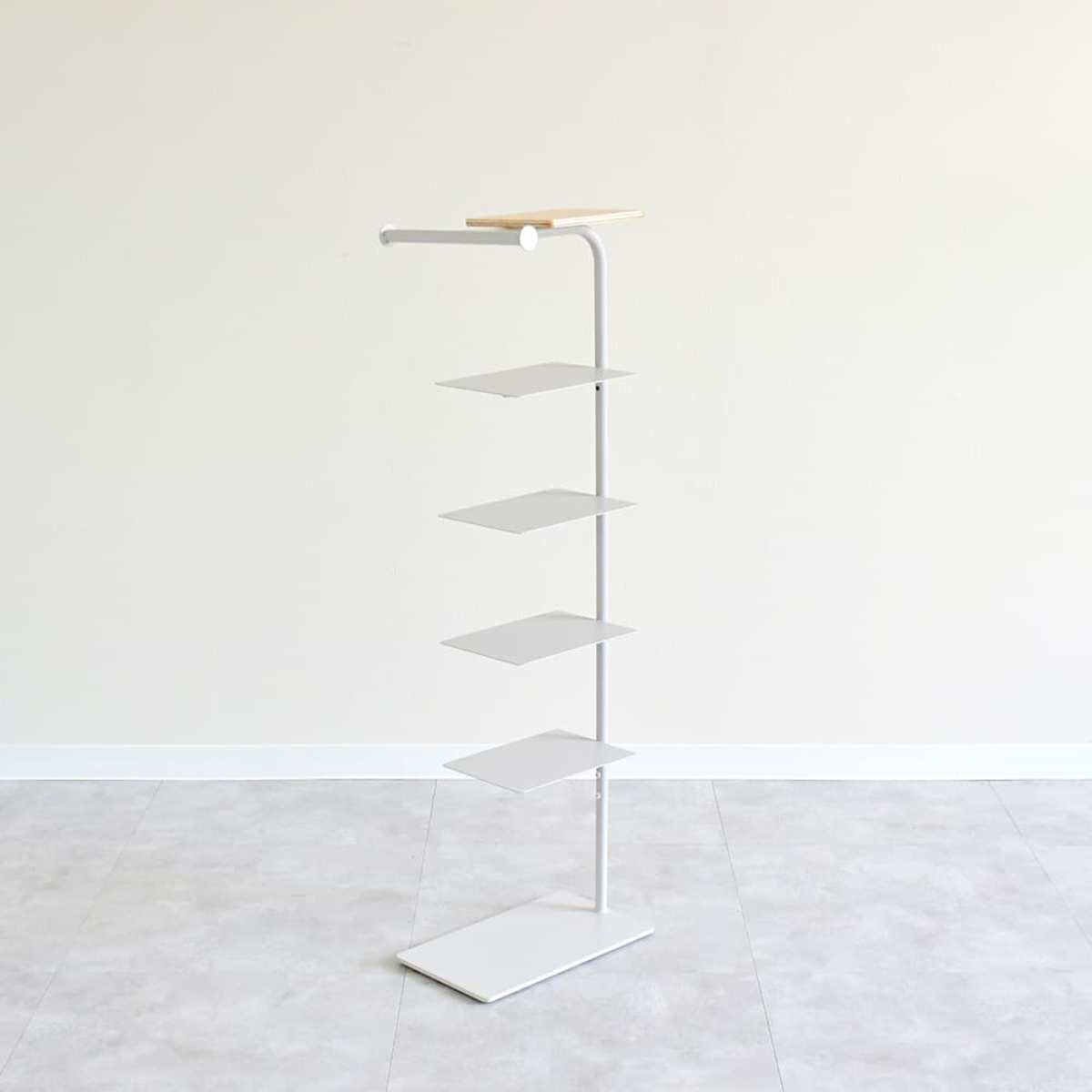 靴が宙に浮かんでいるように見えるスチール棚は、デザイン性だけでなく通気性にも優れています。湿気がこもりにくく、衛生的な収納環境を保てます。棚板は固定式なので、設置後の安定性も高い仕様です。