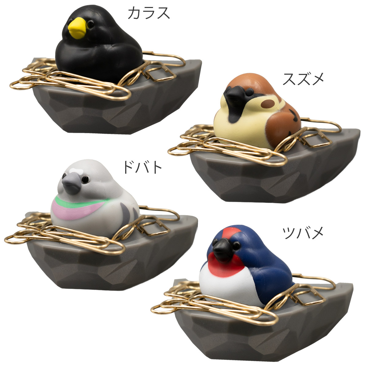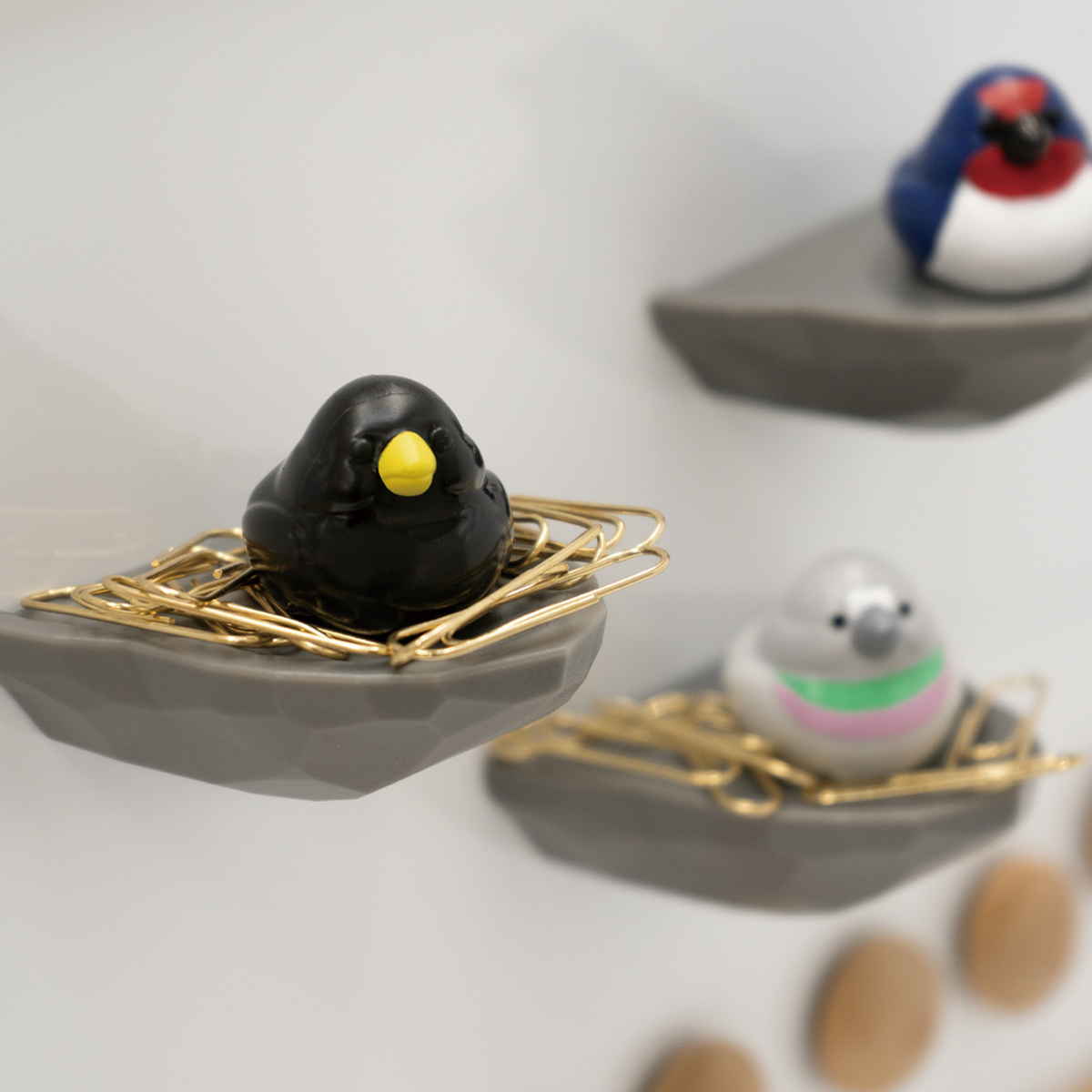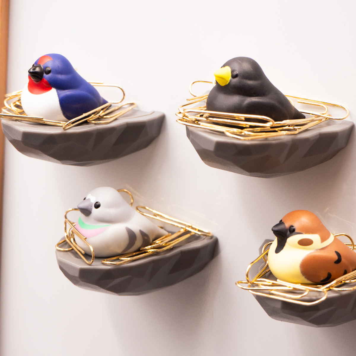トリさんの周りにクリップをまとめておくだけで、まるで巣作りをしているように見える、かわいくてユニークなクリップホルダーです。仕事の合間にふっと癒される、遊び心いっぱいのデザインです。