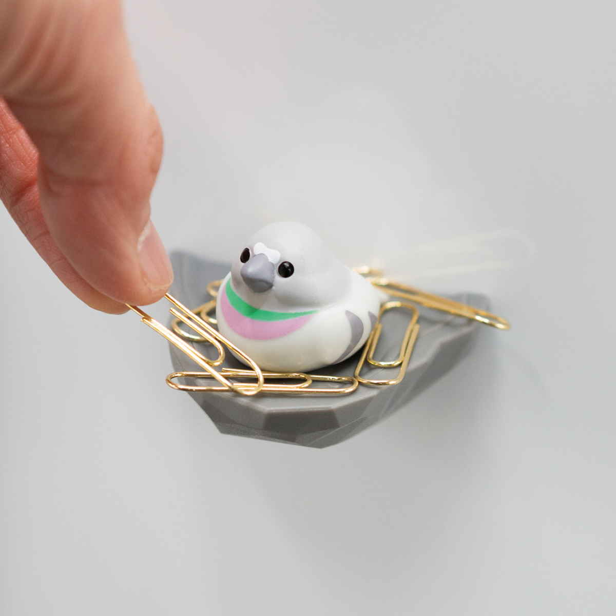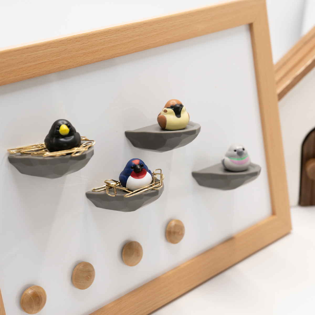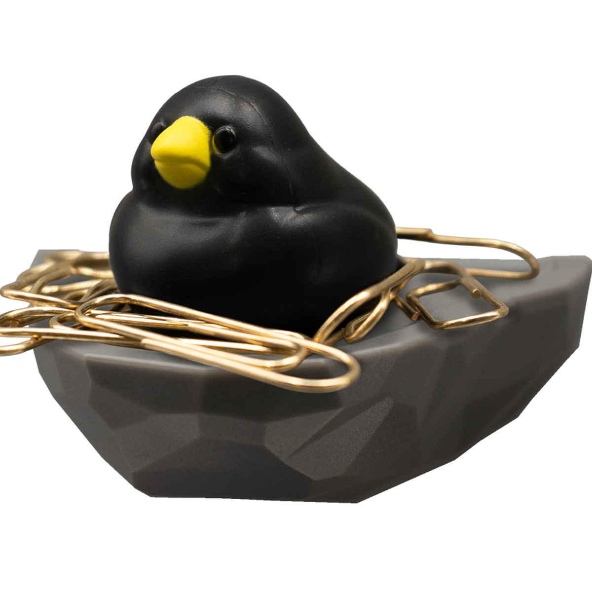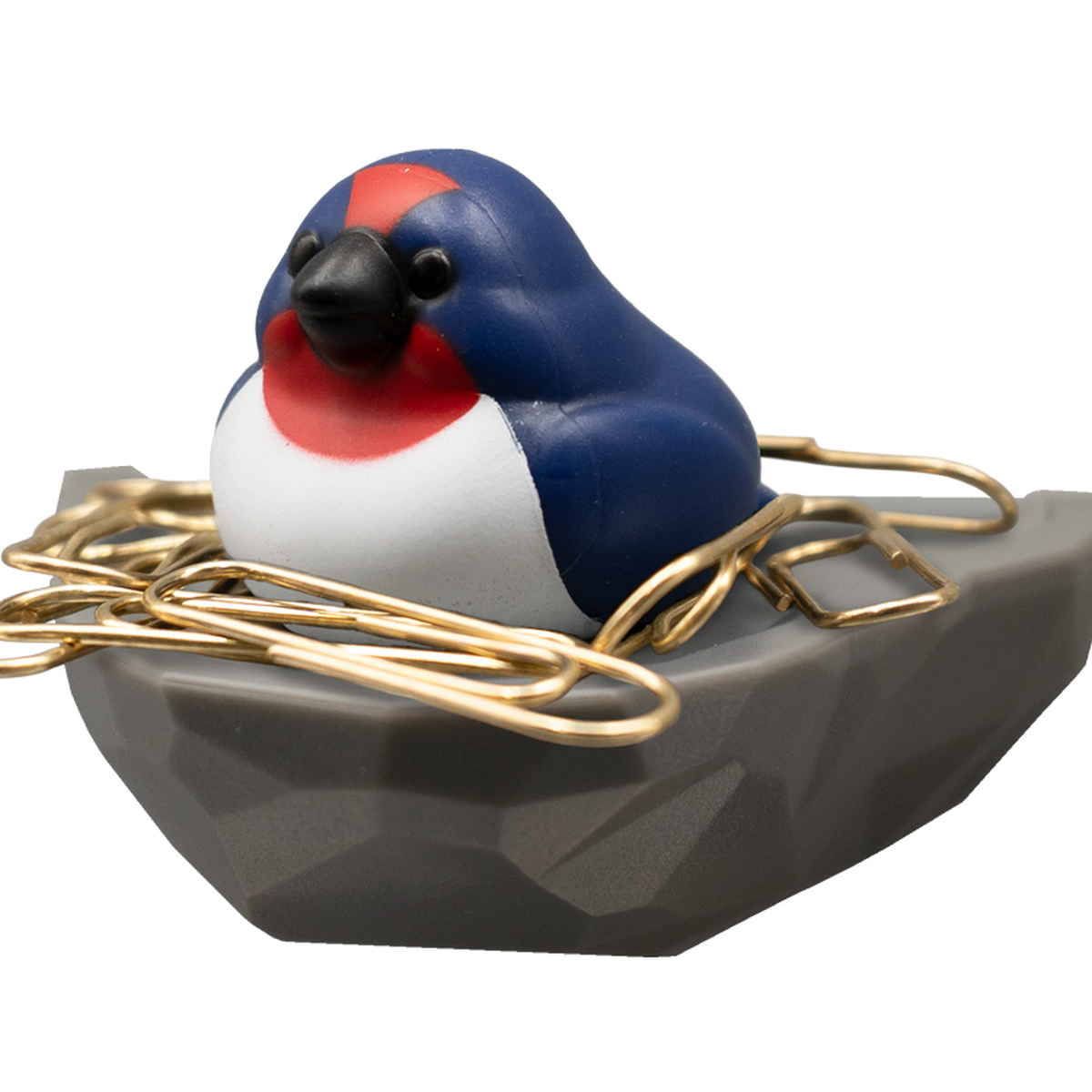 トリさんの周りにクリップをまとめておくだけで、まるで巣作りをしているように見える、かわいくてユニークなクリップホルダーです。仕事の合間にふっと癒される、遊び心いっぱいのデザインです。