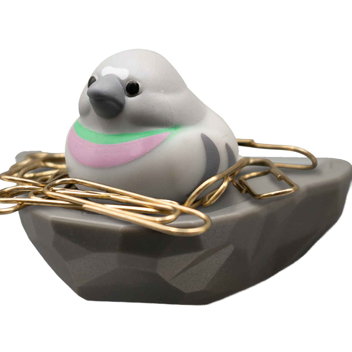トリさんの周りにクリップをまとめておくだけで、まるで巣作りをしているように見える、かわいくてユニークなクリップホルダーです。仕事の合間にふっと癒される、遊び心いっぱいのデザインです。