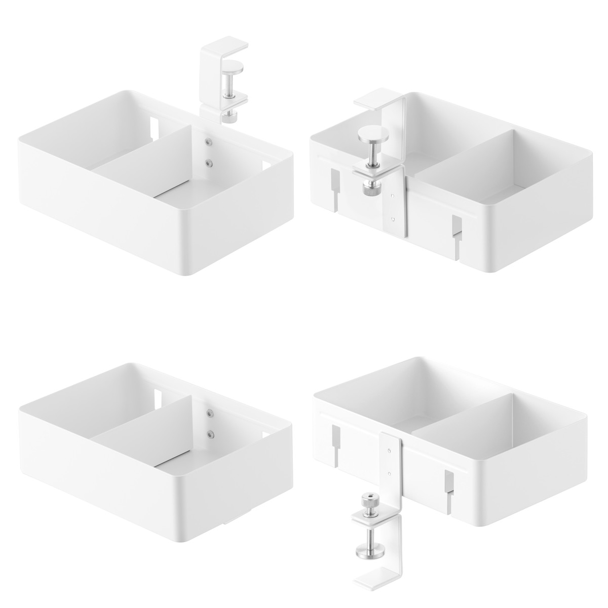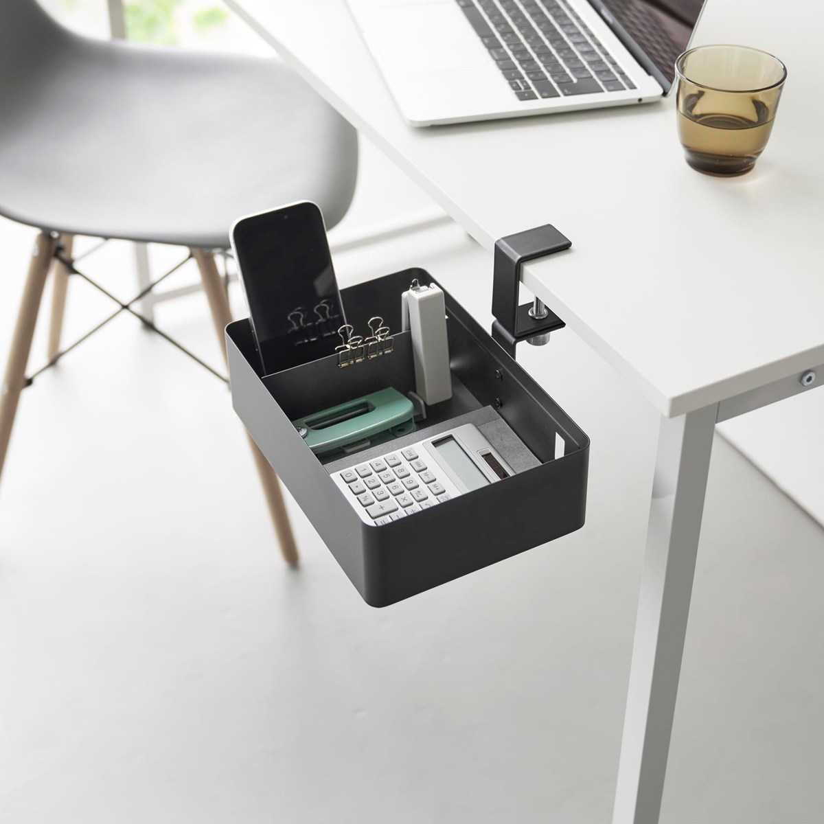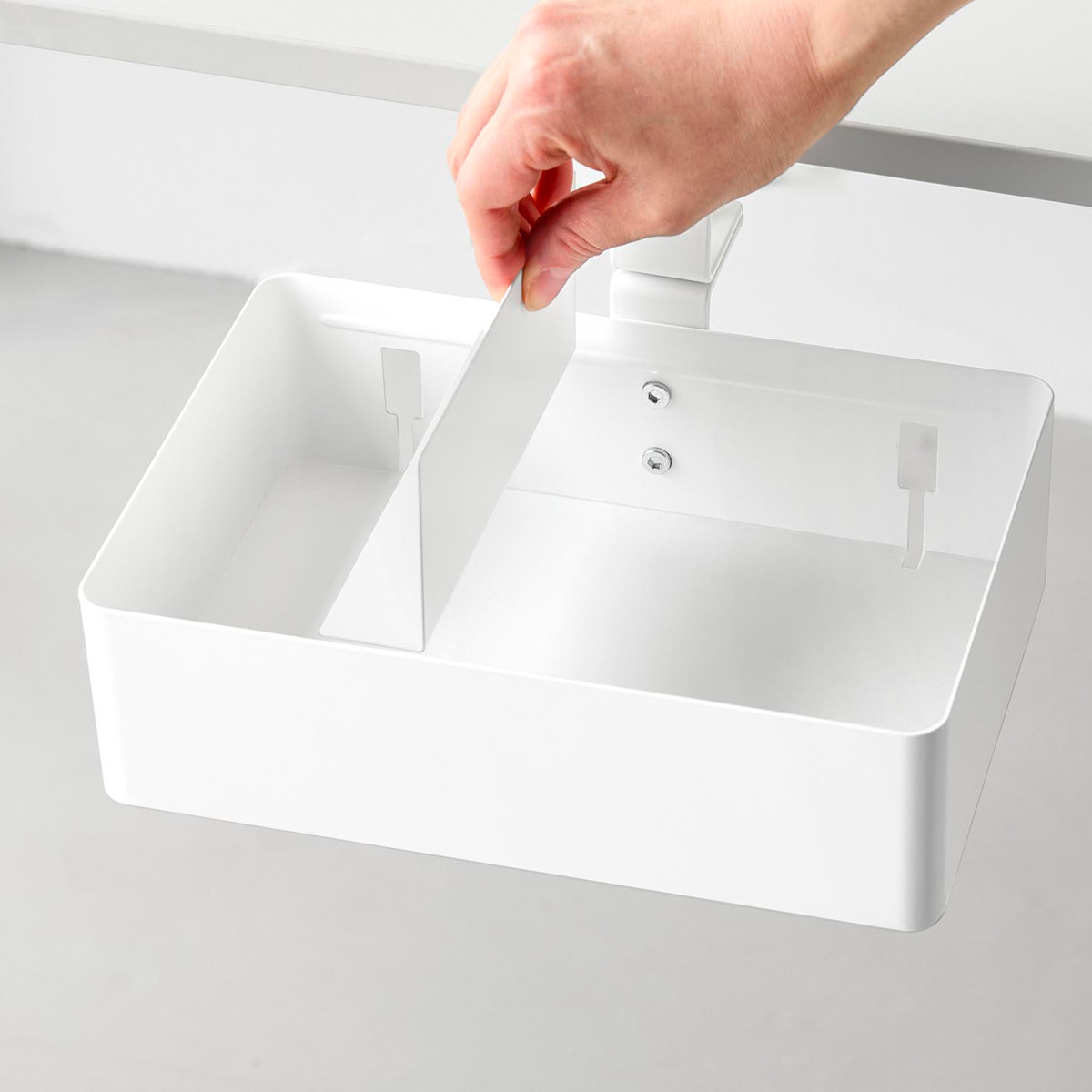 クランプ式の固定構造でしっかりと設置できます。 | マグネット付きの仕切りは、収納物に合わせて自由に位置を調整できます。 |