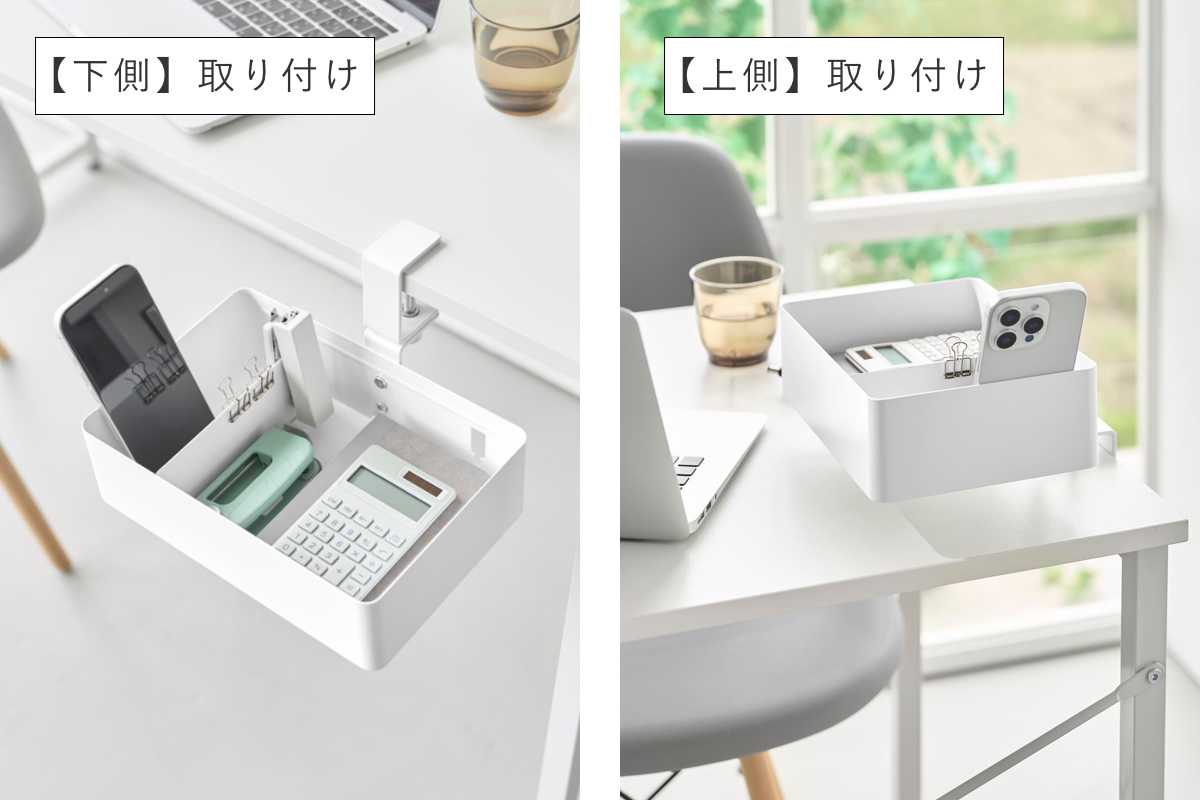 設置場所や用途に合わせて、デスク下側とデスク上側の2通りの取り付けが可能です。