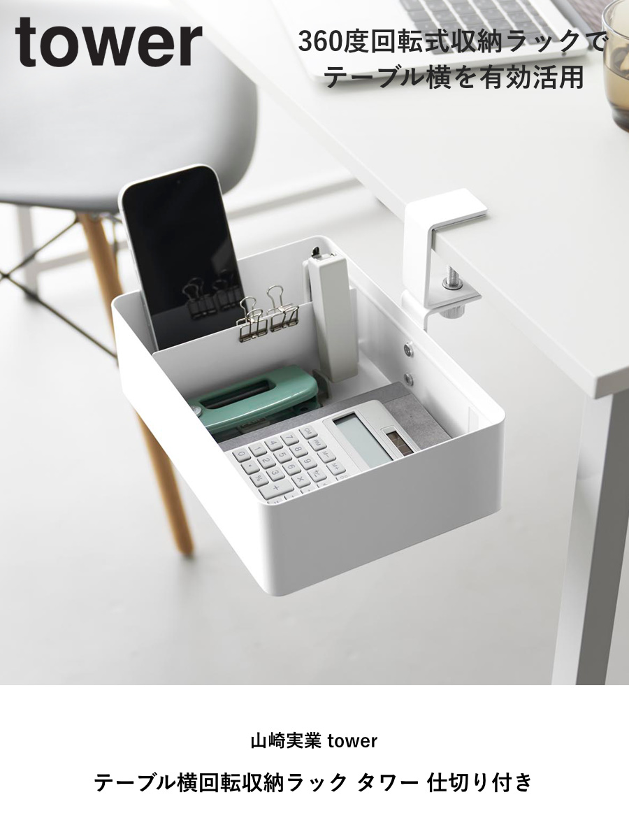 山崎実業 tower テーブル横回転収納ラック タワー 仕切り付き ( 4903208103657 タワーシリーズ テーブル 回転収納ラック 仕切り テーブル横 回転収納 ラック 仕切りあり 収納 テーブル下収納 小物収納 ) 【ホワイト】