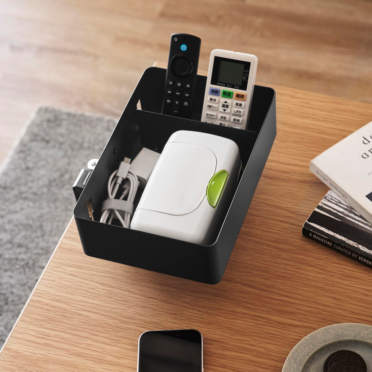 リモコンやテーブルの上の小物などをまとめて収納できます。