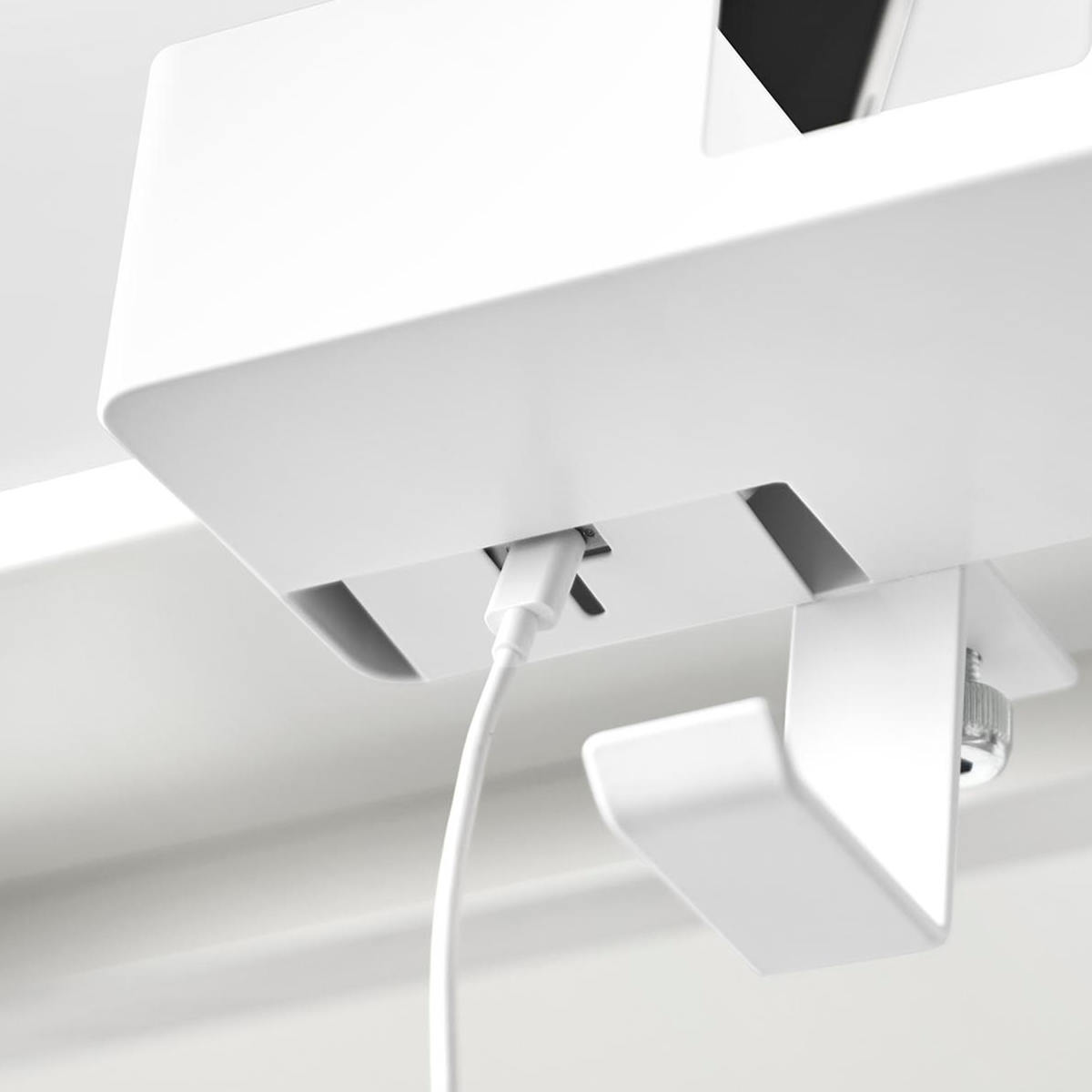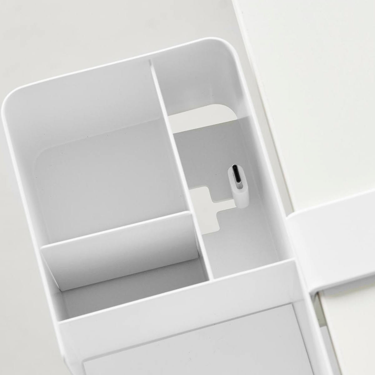 スマートフォンを収納しながら充電することもでき、充電しないときは、ケーブルの先端を引っ掛けておくことができます。
