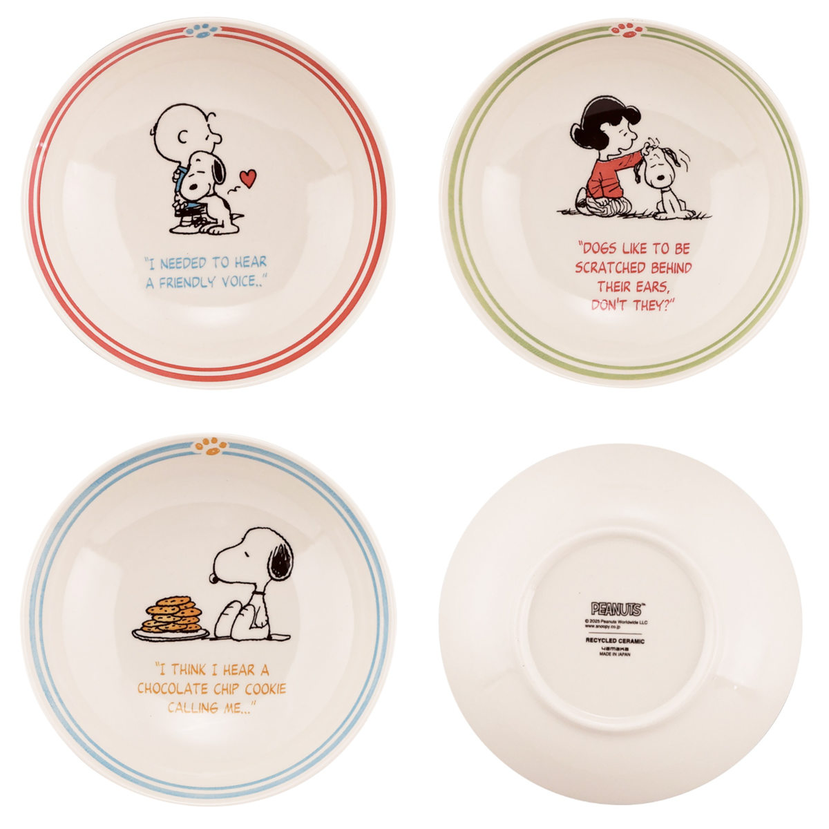 リサイクルセラミックならではの温かみのある生地色と、シンプルなデザインで日常使いしやすいシリーズです。スヌーピーのイラストがあしらわれた親しみやすいデザインは、毎日の食卓になじみやすく、子どもから大人まで幅広くお使いいただけます。普段使いはもちろん、家族で揃えたり、ギフトにもおすすめです。