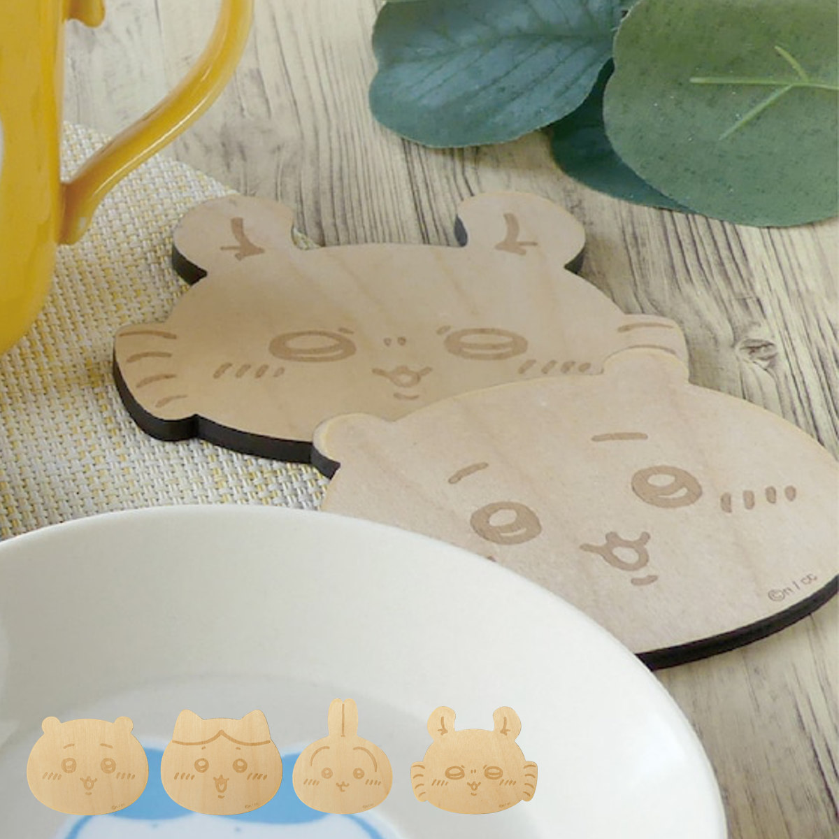 コースター 木製コースター ちいかわ ( 天然木 木製 ダイカット キャラクター コップ マット 置き おしゃれ かわいい ナチュラル ハチワレ ウサギ モモンガ ) 【ハチワレ】