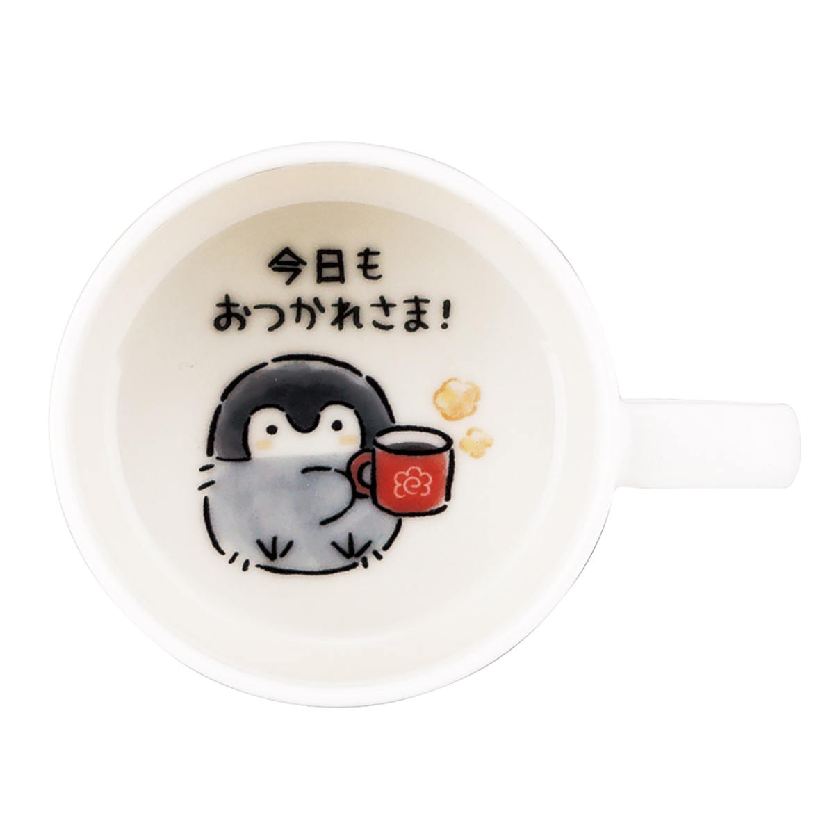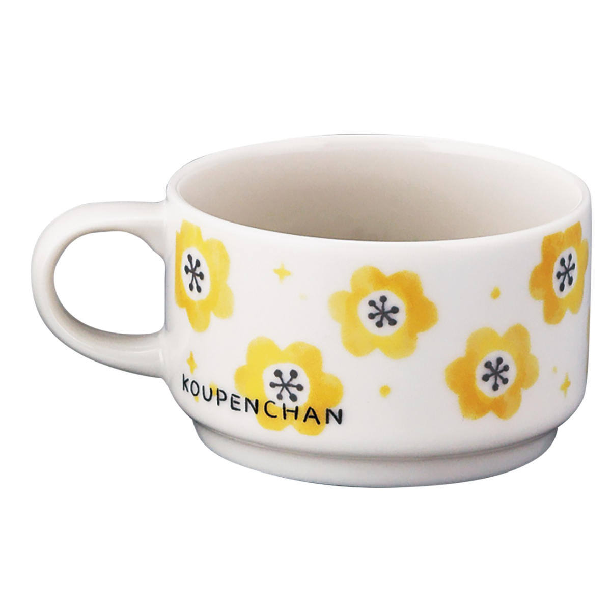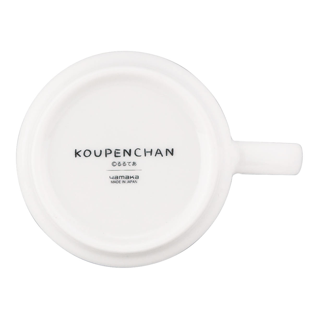 毎日のコーヒーや紅茶にちょうどいい、300mlサイズの陶器製マグカップです。安定感のあるフォルムなので食事の時はスープカップとしても使えます。カップの底には、コウペンちゃんからの温かいメッセージが込められています。