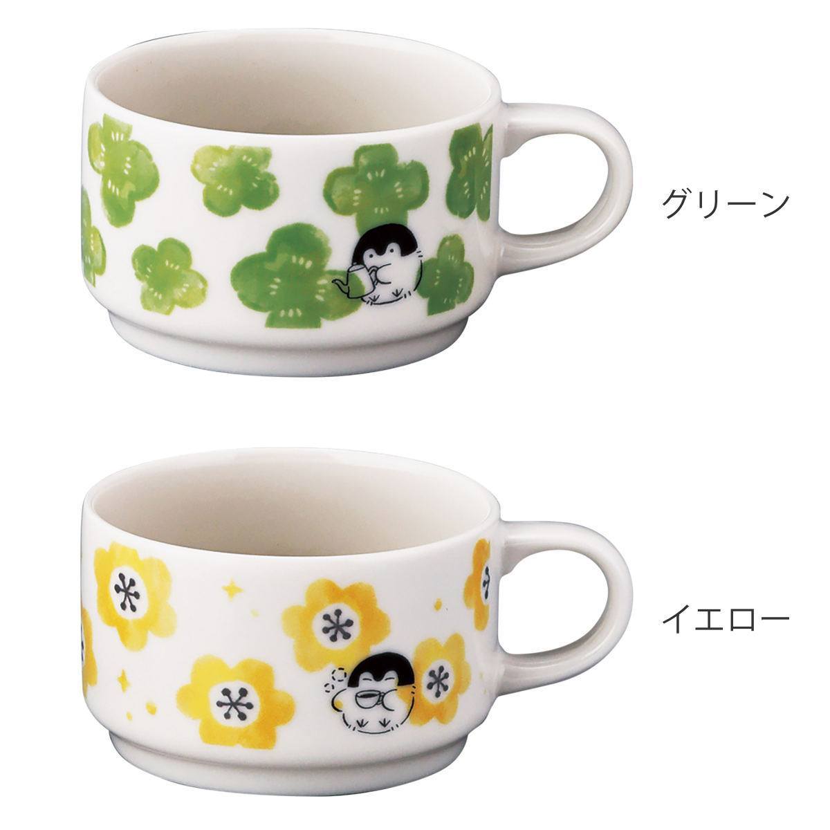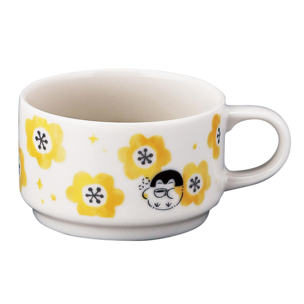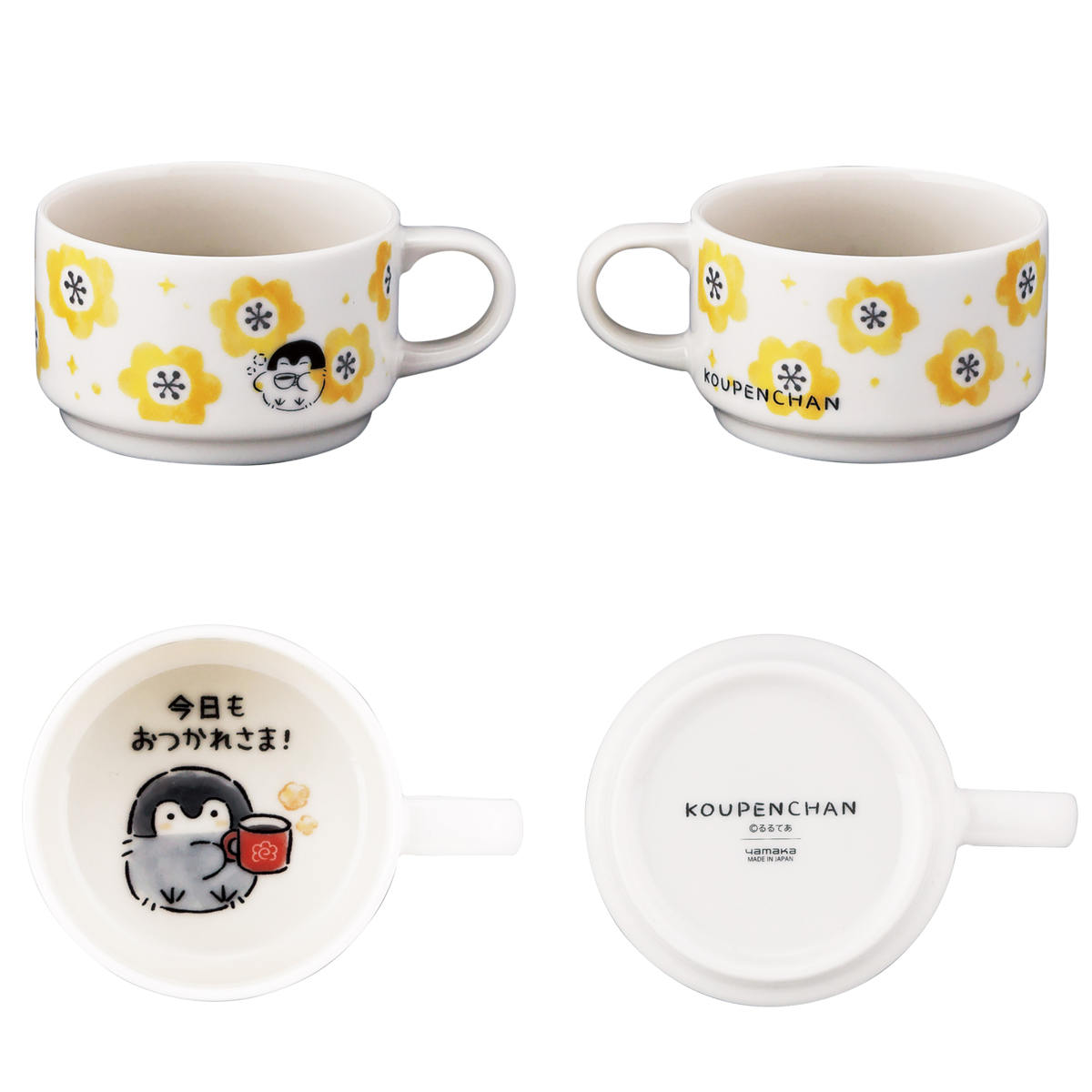 毎日のコーヒーや紅茶にちょうどいい、300mlサイズの陶器製マグカップです。安定感のあるフォルムなので食事の時はスープカップとしても使えます。カップの底には、コウペンちゃんからの温かいメッセージが込められています。