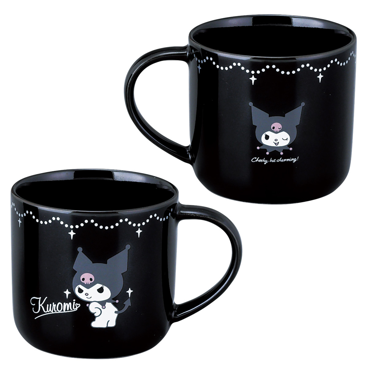 クロミのかわいいデザインのマグカップです。ブラックを基調としたスタイリッシュなデザインがキッチンを楽しく彩ります。容量350mlで、朝のコーヒーやティータイムにぴったりなサイズです。クロミ好きな方へのプレゼントにもおすすめです。
