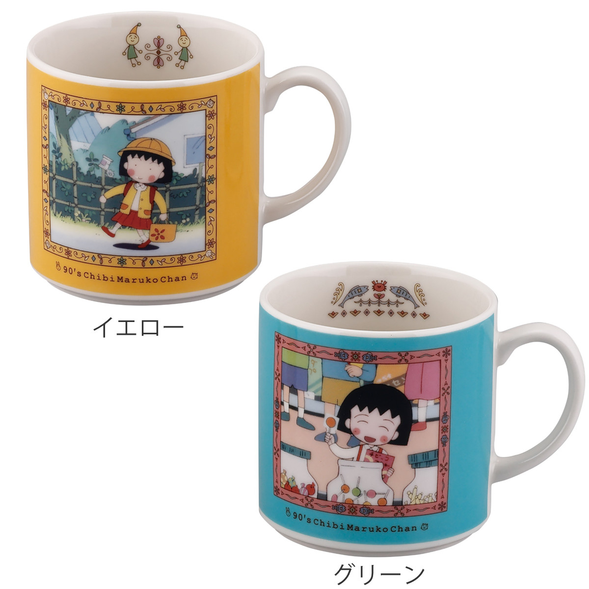 マグ ちびまる子ちゃん ( 350ml 電子レンジ対応 食洗機対応 磁器 マグカップ マグコップ カップ 食器 日本製 アニメ レトロ キャラクター かわいい ) 【イエロー】